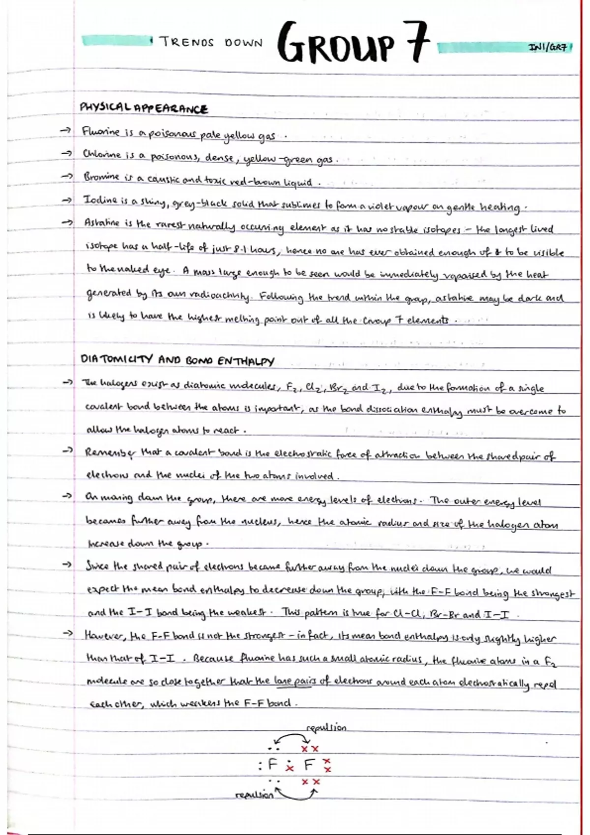 AQA A-Level Chemistry Handwritten Notes – Group 7