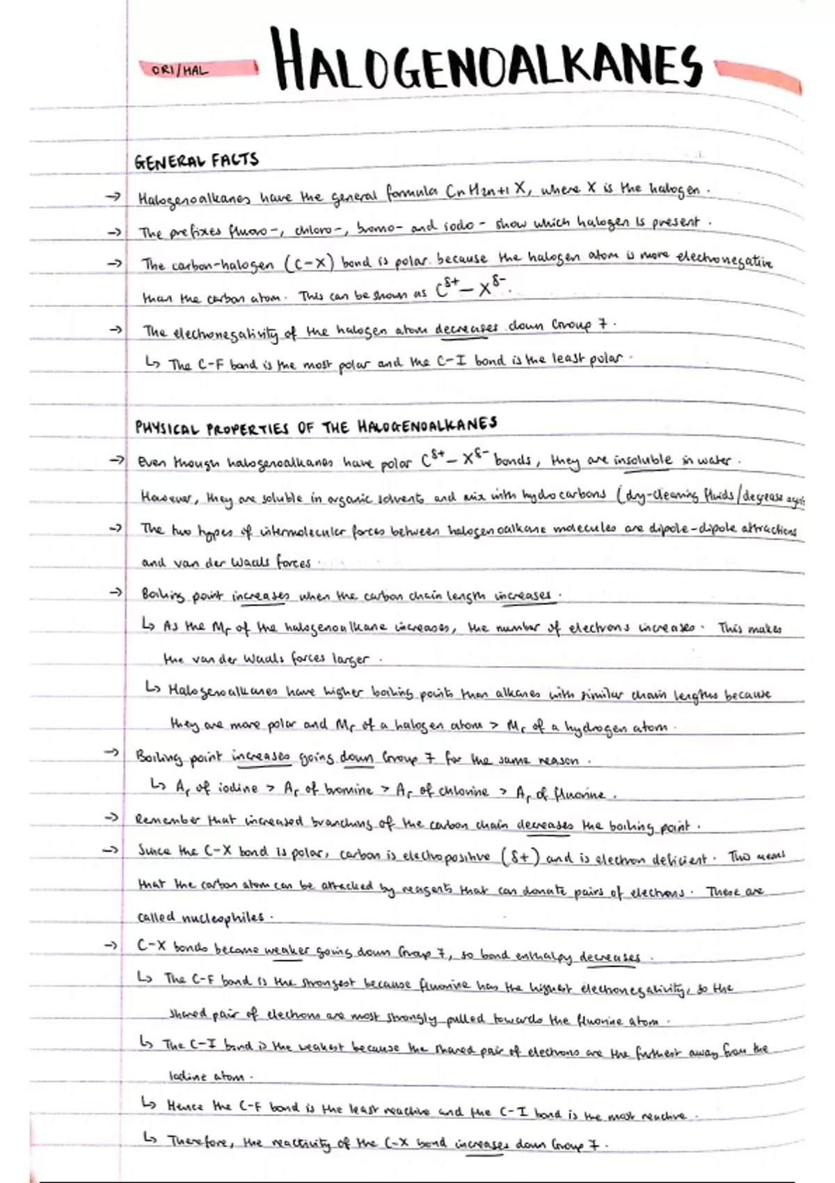 AQA A-Level Chemistry Handwritten Notes – Halogenoalkanes