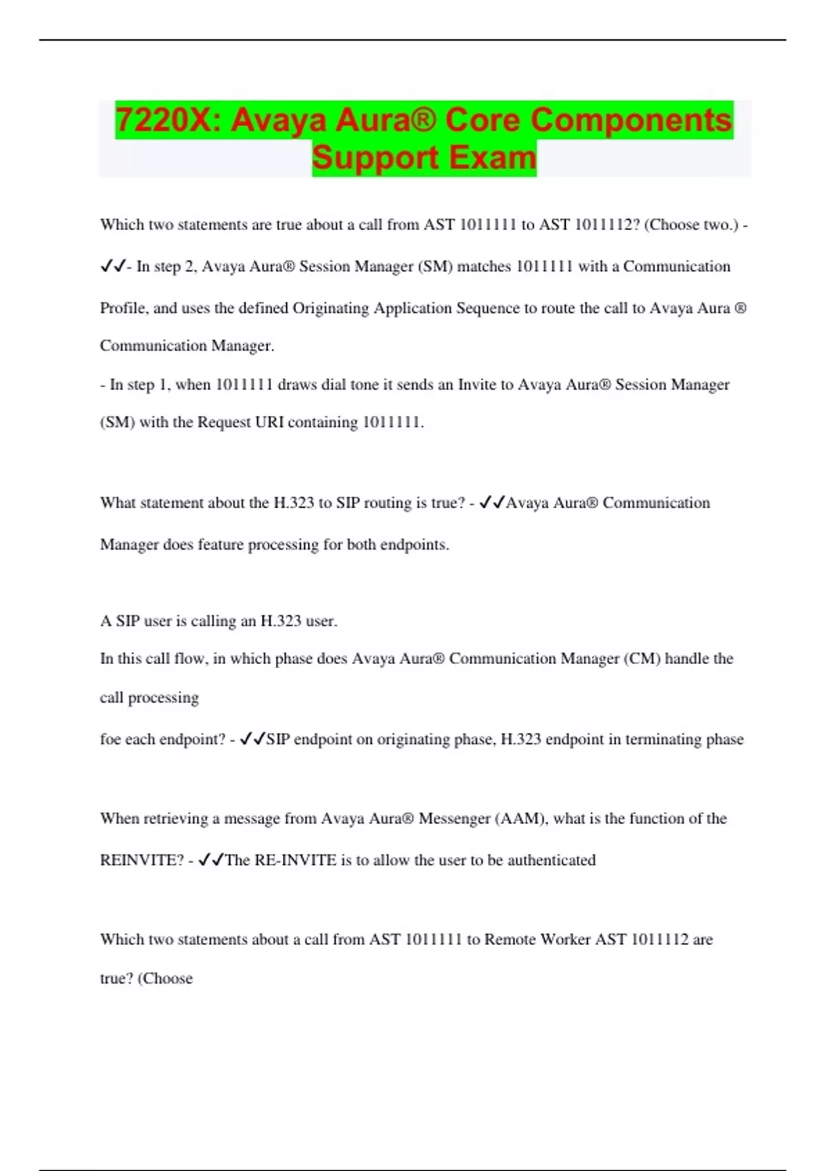 7220X: Avaya Aura® Core Components Support Exam | 65 Questions with 100% Correct Answers | Updated & Verified