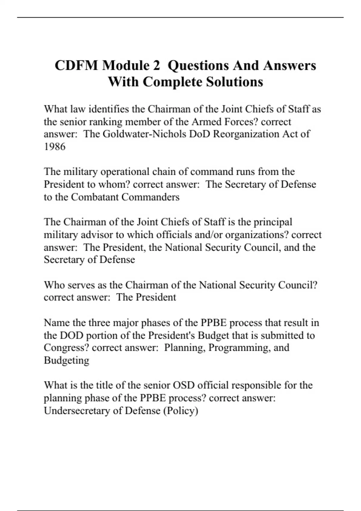CDFM Module 2 Questions And Answers With Complete Solutions
