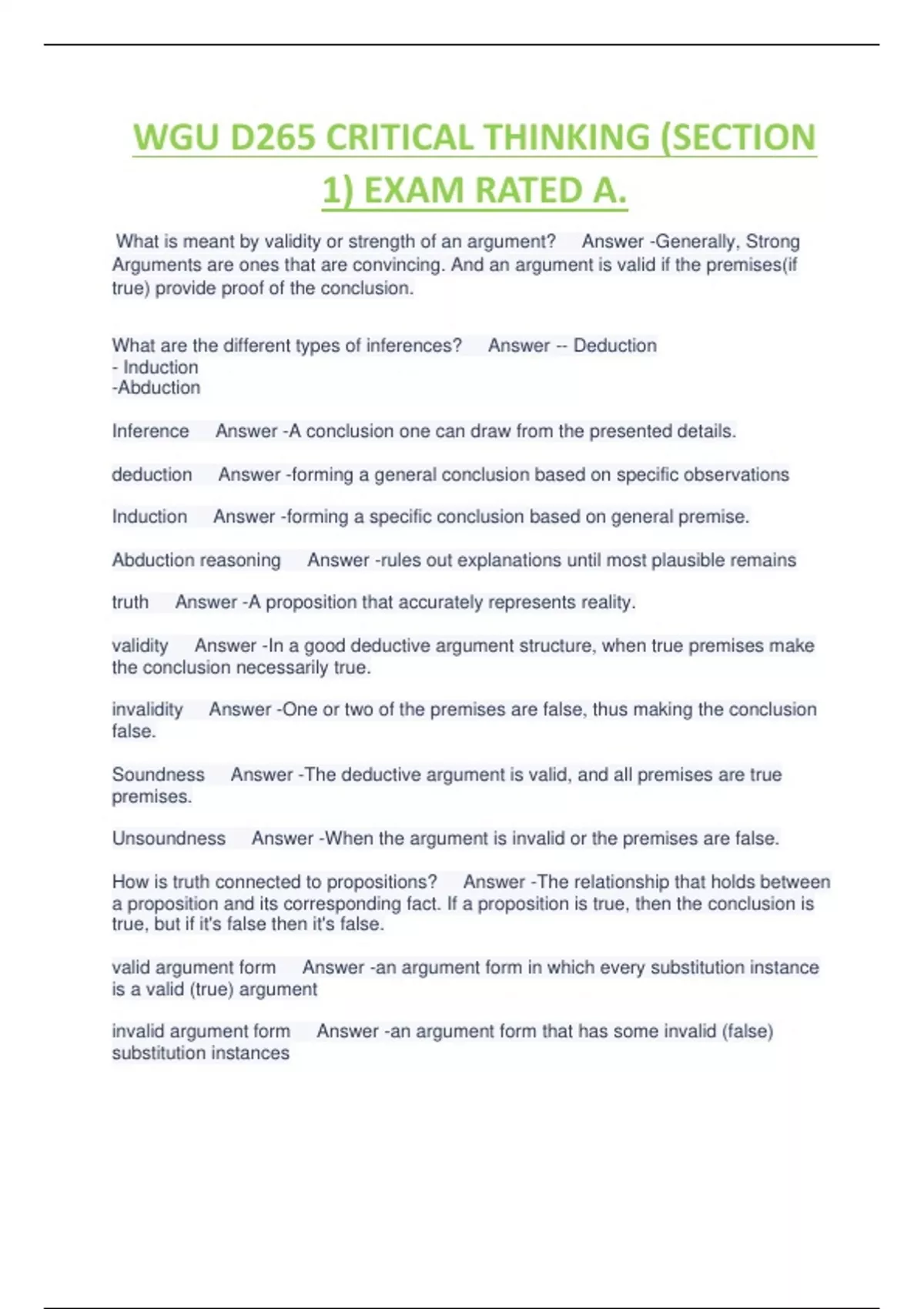 WGU D265 CRITICAL THINKING (SECTION 1) EXAM RATED A.