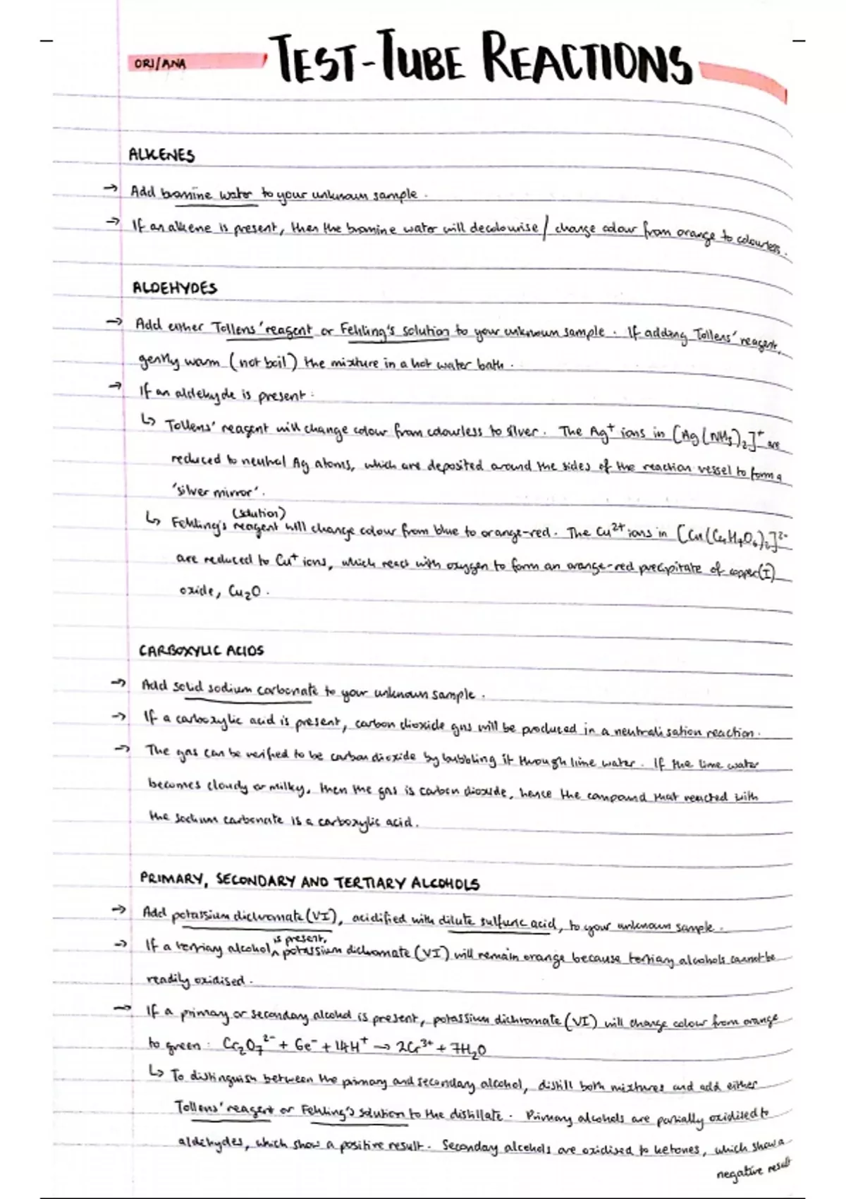 AQA A-Level Chemistry Handwritten Notes – Organic analysis