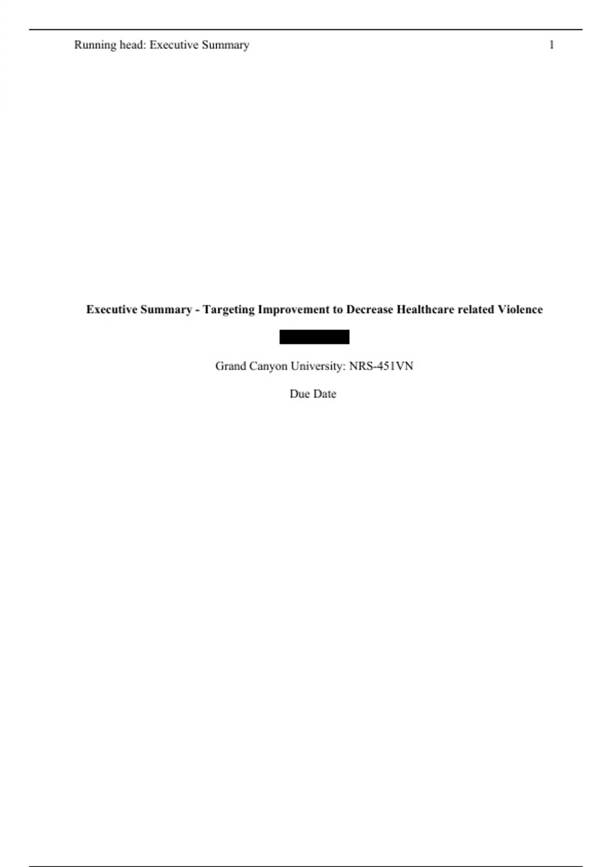 NRS 451VN Topic 3 Assignment Executive Summary- Targeting Improvement to Decrease Healthcare related Violence Grand Canyon