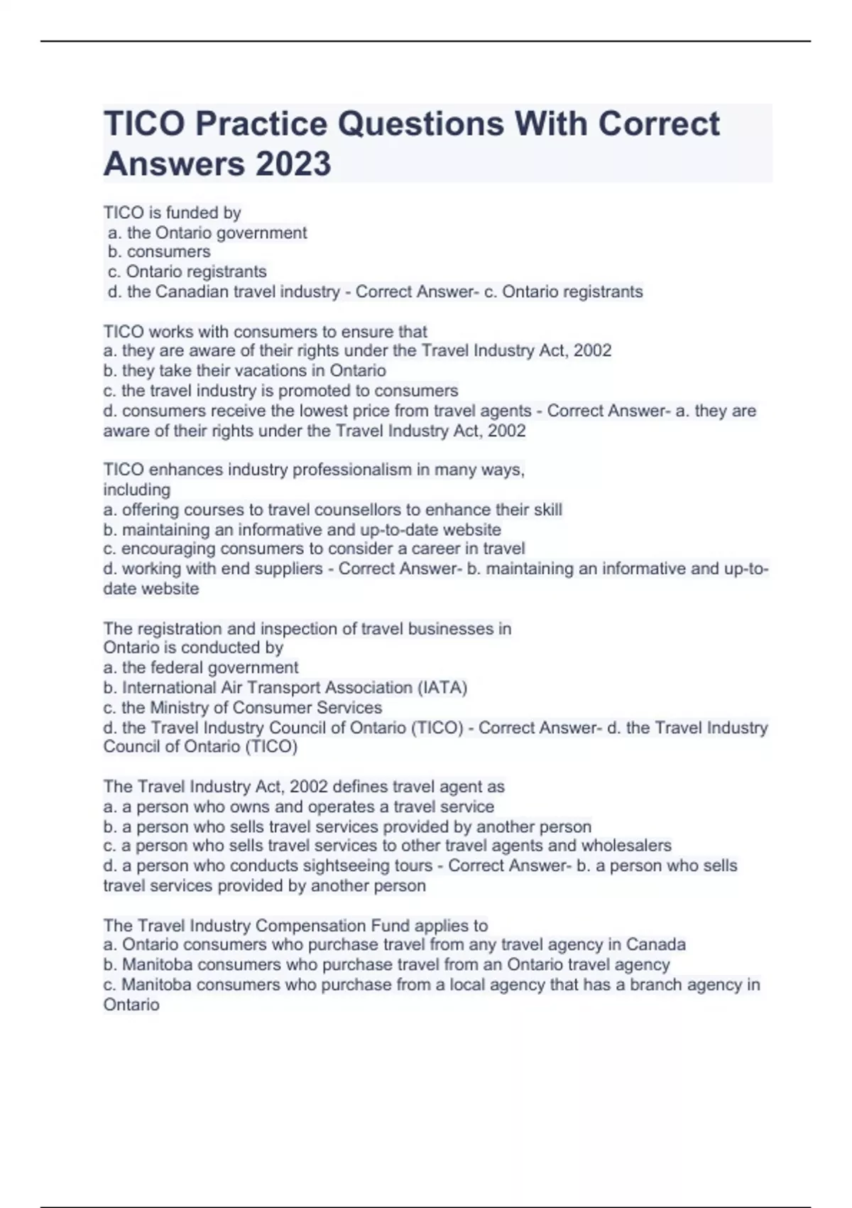 tico practice questions with correct answers 2023
