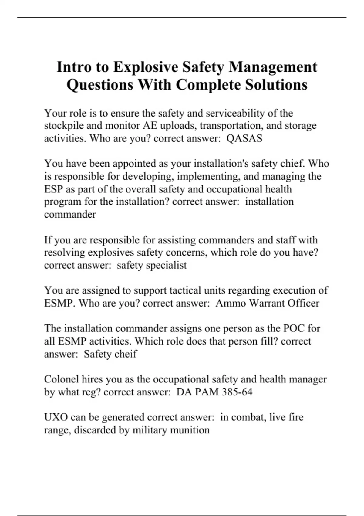 Intro to Explosive Safety Management Questions With Complete Solutions
