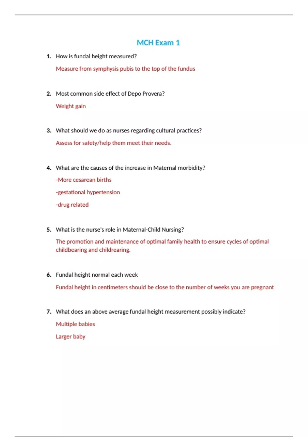 NUR 2633 / NUR2633 Exam 1: Maternal Child Health Nursing Exam 1 Review (Latest 2023/2024) Rasmussen