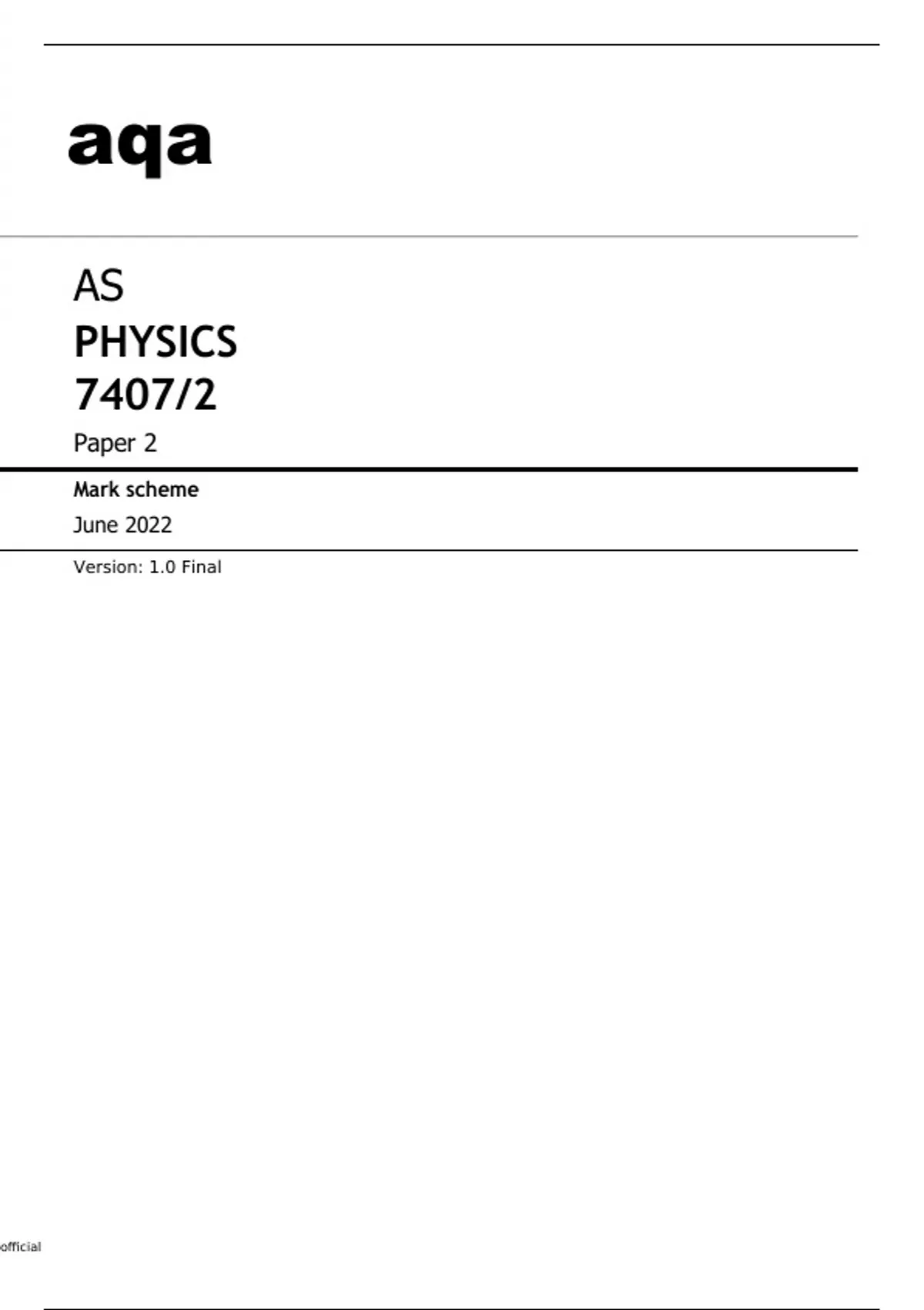 Aqa AS Physics (7407-2) Mark Scheme June2022