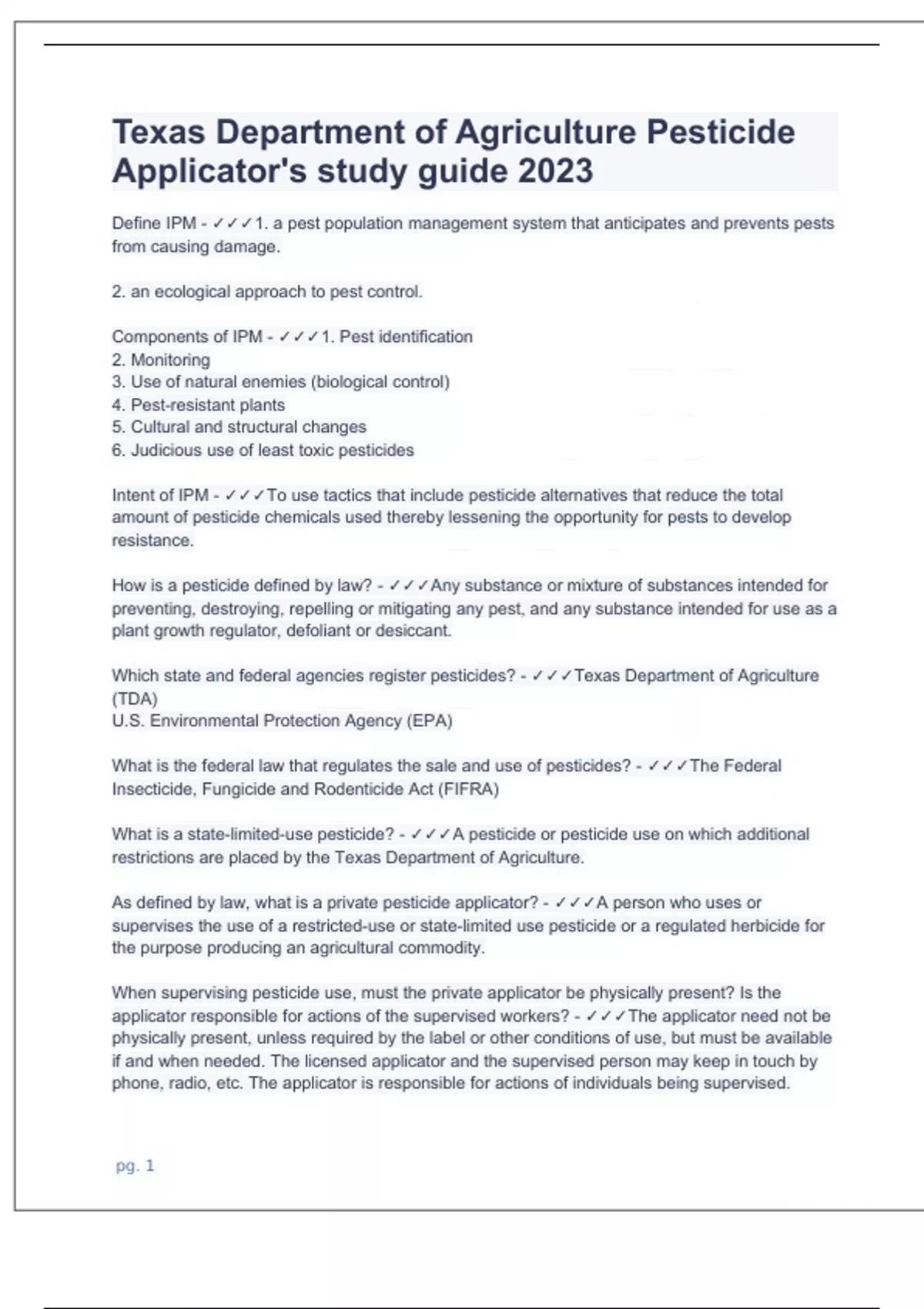 Texas Department of Agriculture Pesticide Applicator's study guide 2023