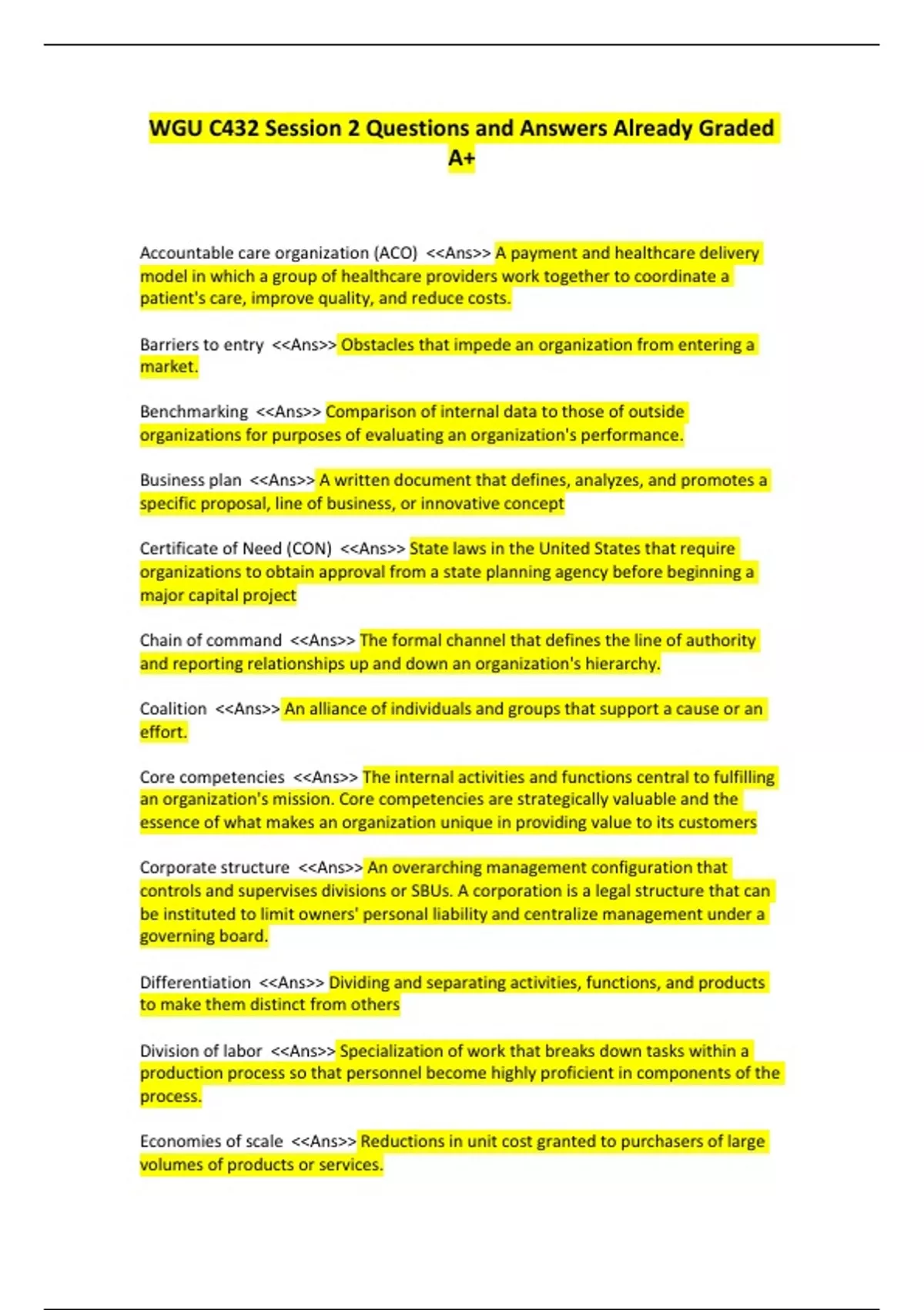 WGU C432 Session 2 Questions and Answers Already Graded A+