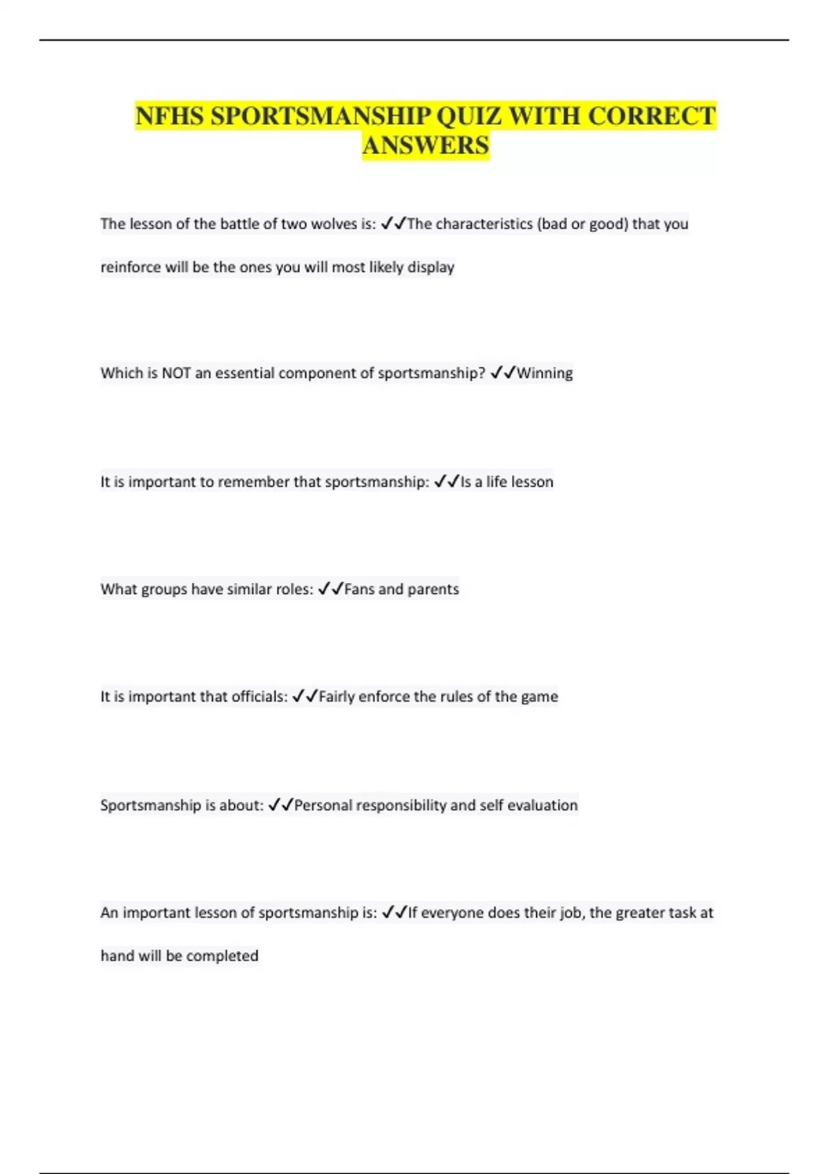 NFHS SPORTSMANSHIP QUIZ WITH CORRECT ANSWERS