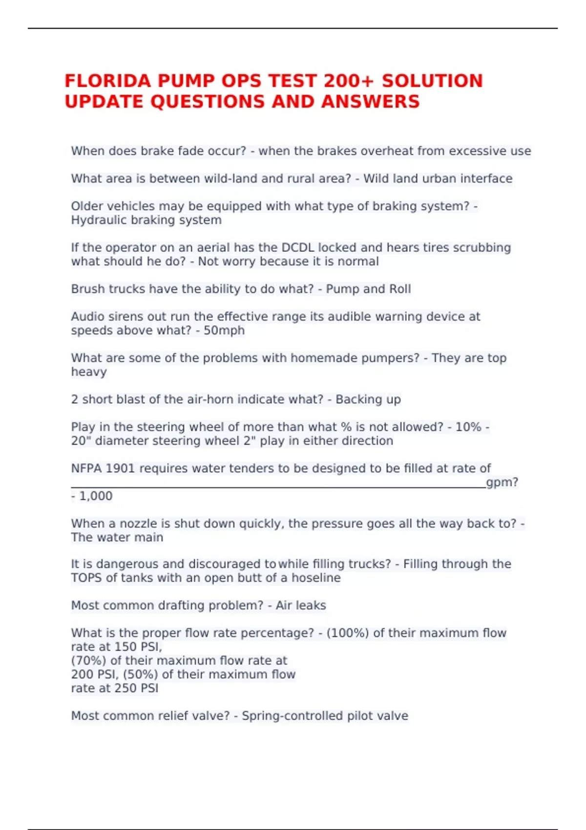 FLORIDA PUMP OPS TEST 200+ SOLUTION UPDATE QUESTIONS AND ANSWERS
