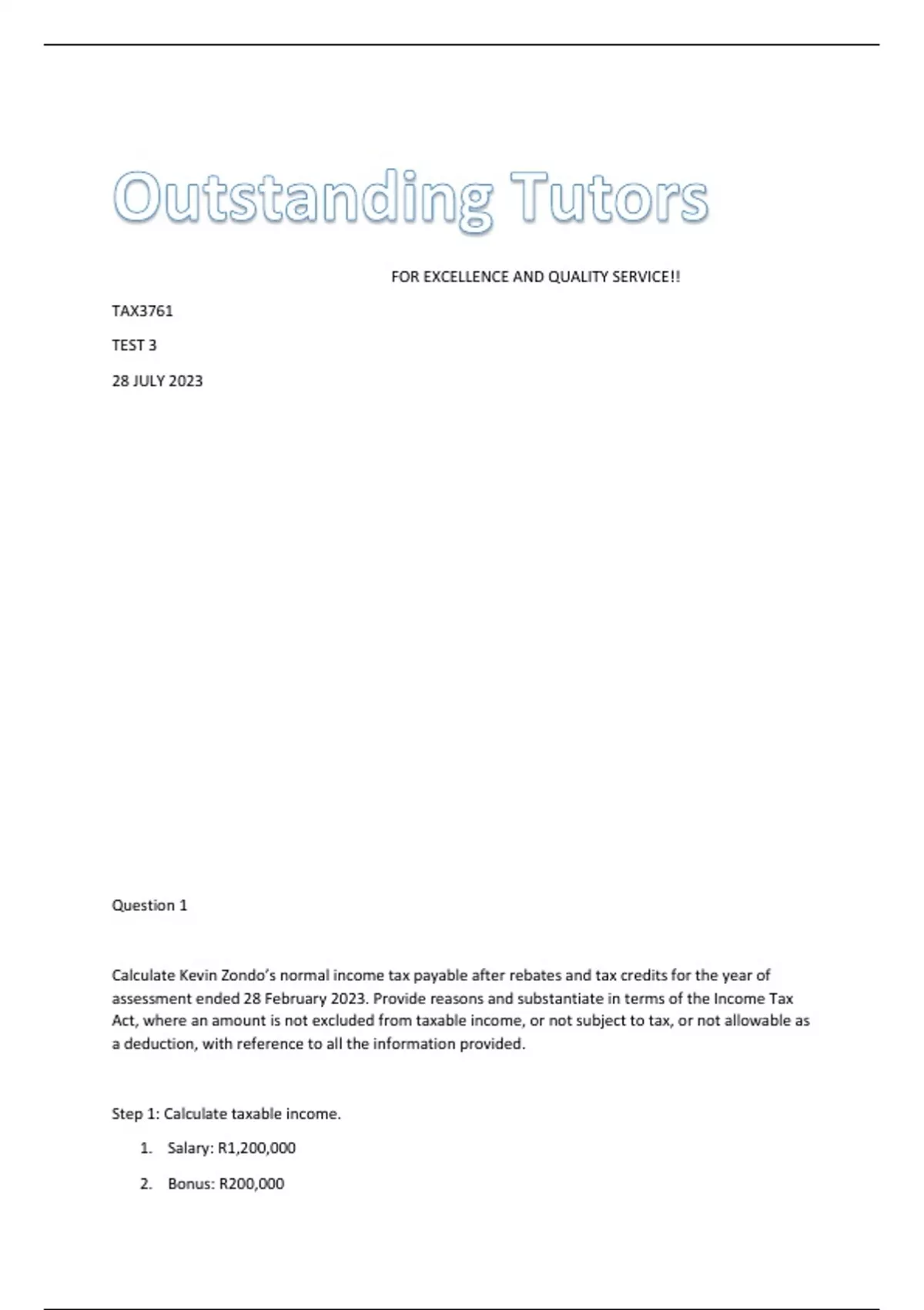 This document contains solution to TAX3761 test 3 due 28 July 2023, using this document will ensure a 90% plus distinction pass.