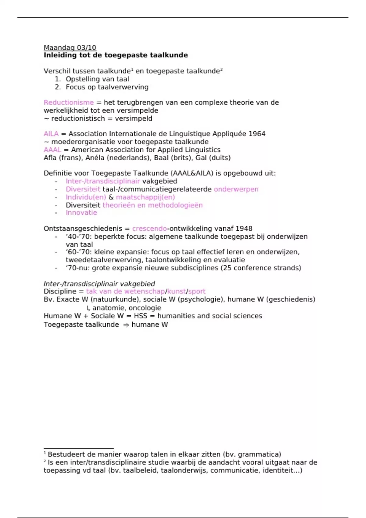 Definitie voor Toegepaste Taalkunde (AAAL&AILA) is opgebouwd uit: