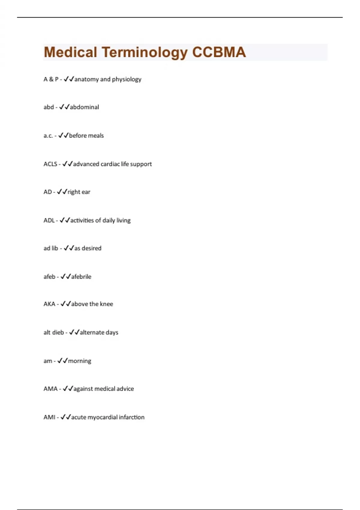 - Medical Terminology CCBMA