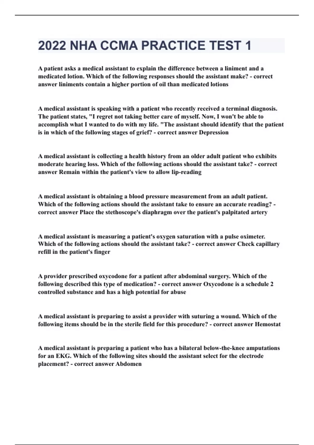 2022 NHA CCMA PRACTICE TEST 1|PDATED&VERIFIED|100% SOLVED|GUARANTEED SUCCESS