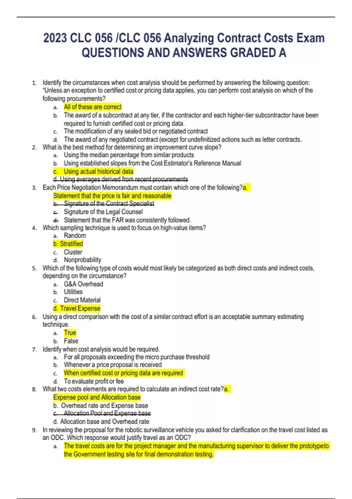 2023 CLC 056 /CLC 056 Analyzing Contract Costs Exam QUESTIONS AND ANSWERS GRADED A