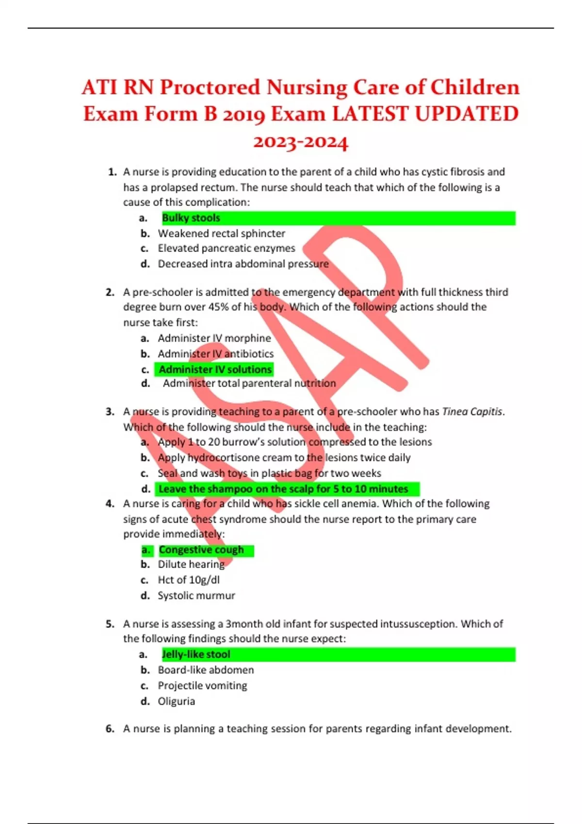 2023 ATI Nursing Care of Children Proctored Exam 2023 , Nursing Care of Children ATI Proctored Exam 2023 REAL EXAM WITH RATIONALES