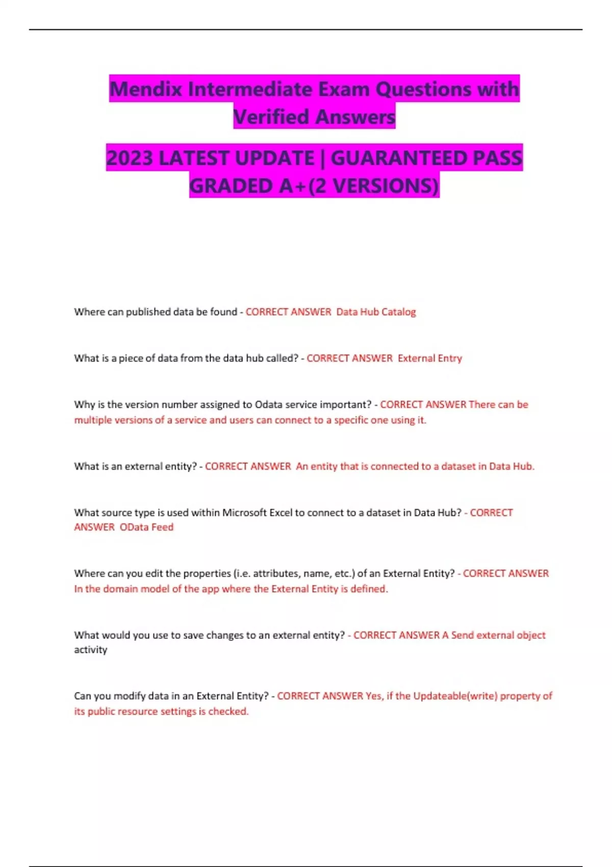Mendix Intermediate Exam Questions with Verified Answers 2023 LATEST UPDATE | GUARANTEED PASS GRADED A+(2 VERSIONS)