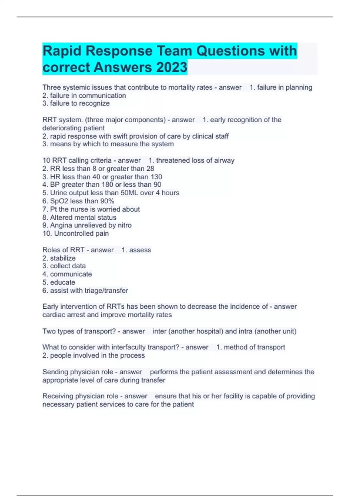 Roles of RRT - answer 1. assess