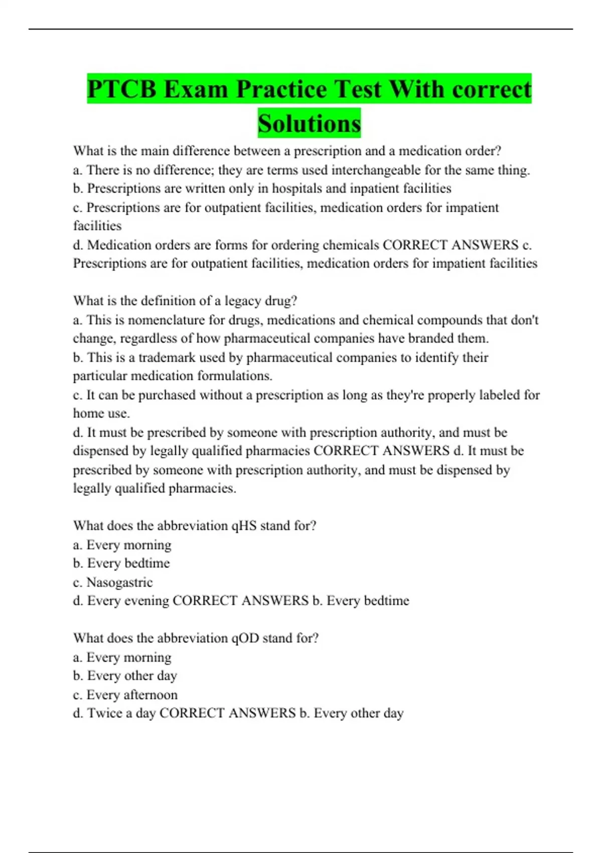 PTCB Exam Practice Test With correct Solutions