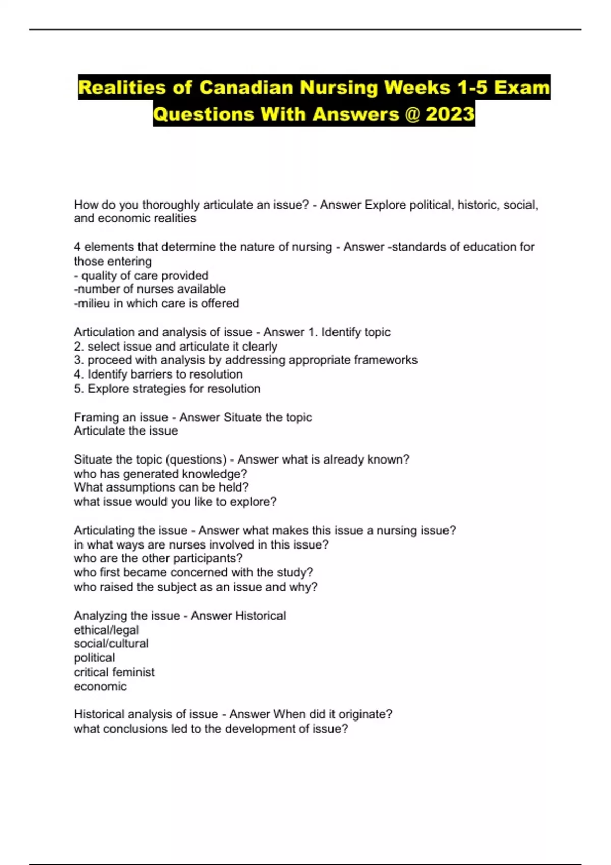 Realities of Canadian Nursing Weeks 1-5 Exam Questions With Answers @ 2023...
