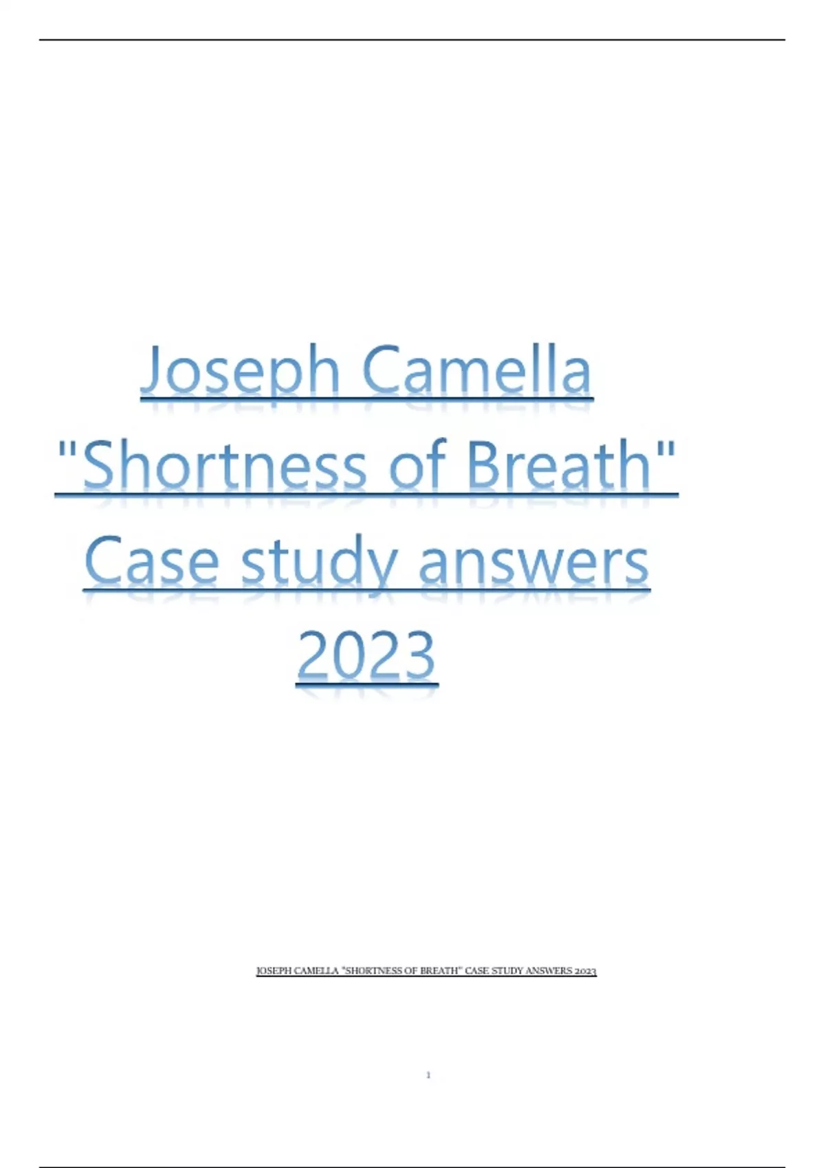 JOSEPH CAMELLA "SHORTNESS OF BREATH" CASE STUDY ANSWERS 2023
