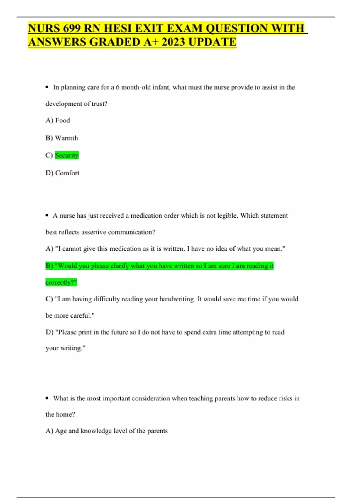 NURS 699 RN HESI EXIT EXAM QUESTION WITH ANSWERS GRADED A+ 2023 UPDATE