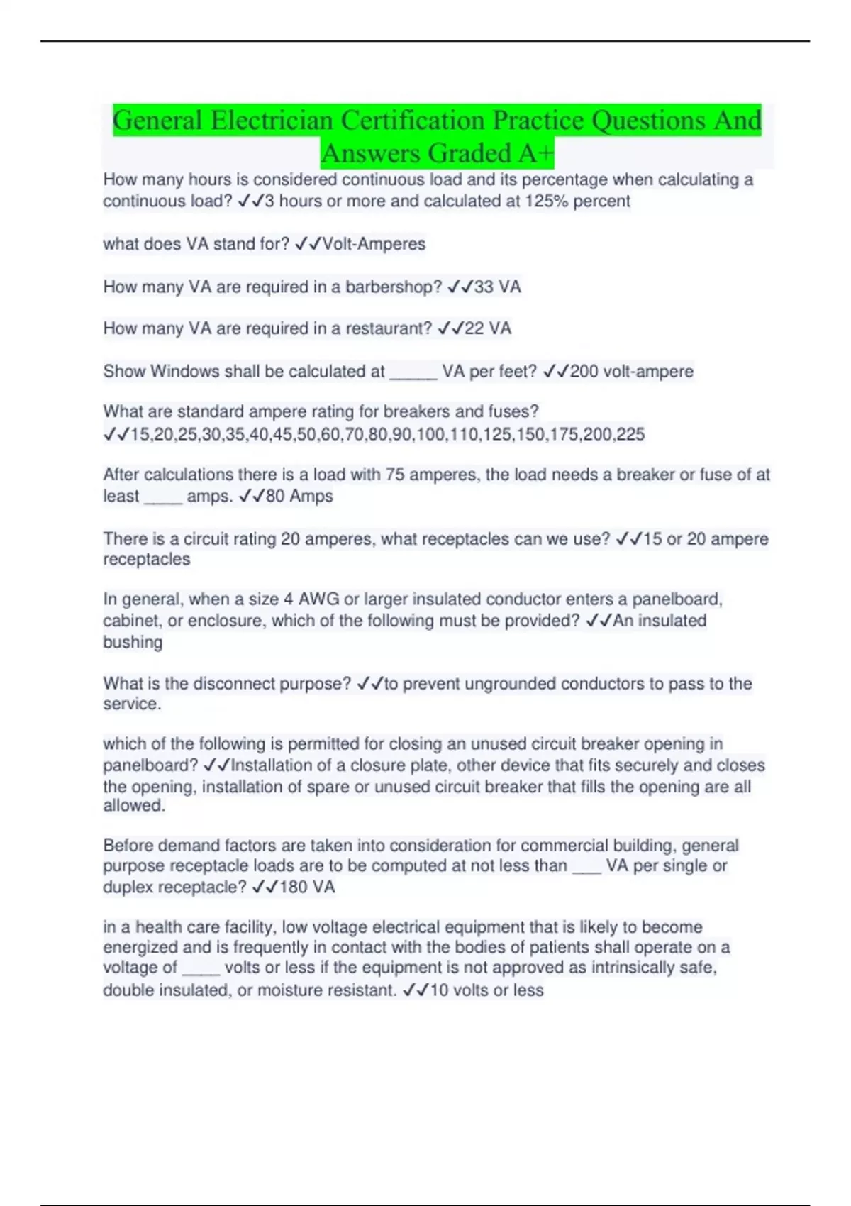 General Electrician Certification Practice Questions And Answers Graded A+ General Electrician Certification Practice Questions And Answers Graded A+ General Electrician Certification Practice Questions And Answers Graded A+