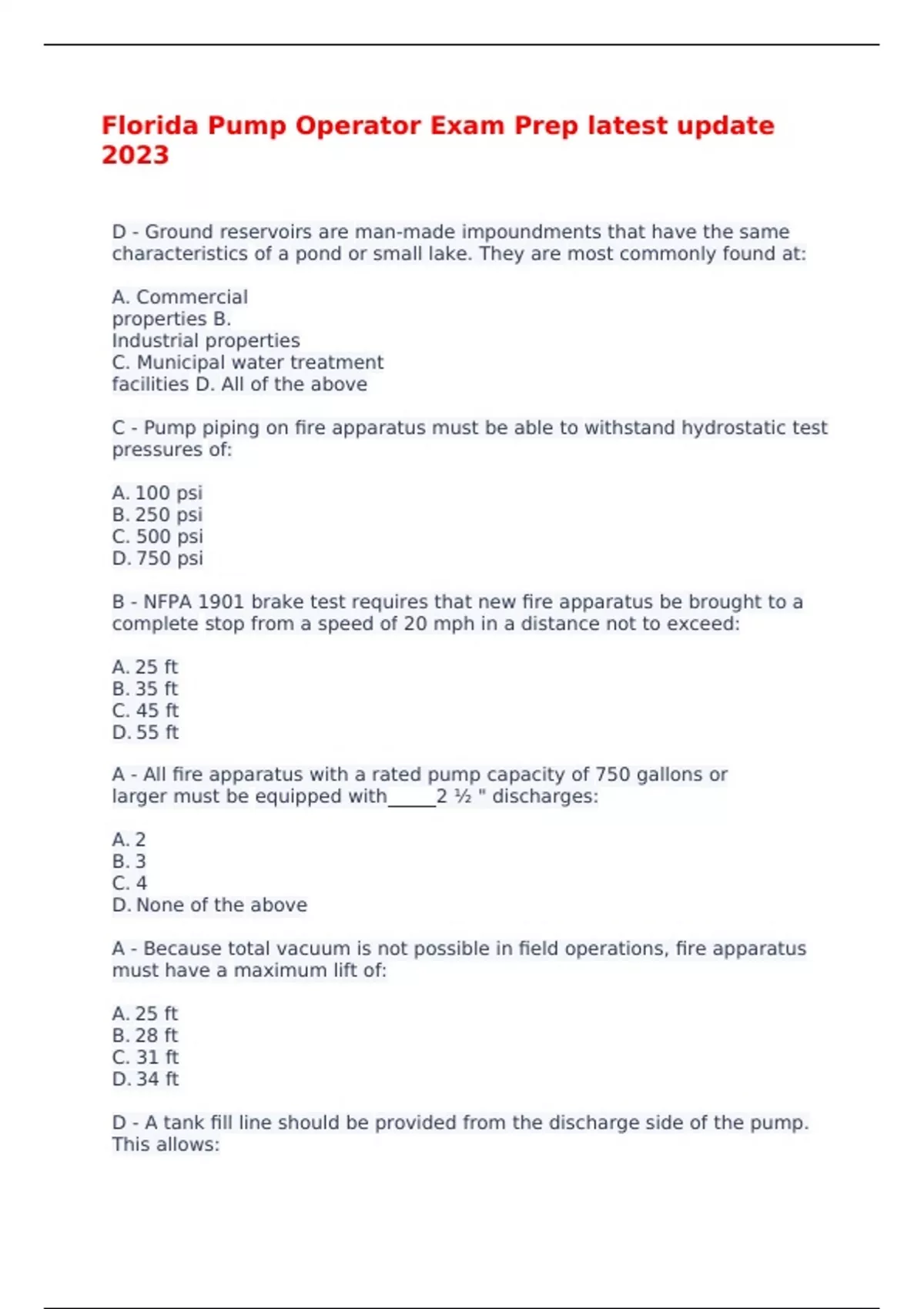 Florida Pump Operator Exam Prep latest update 2023