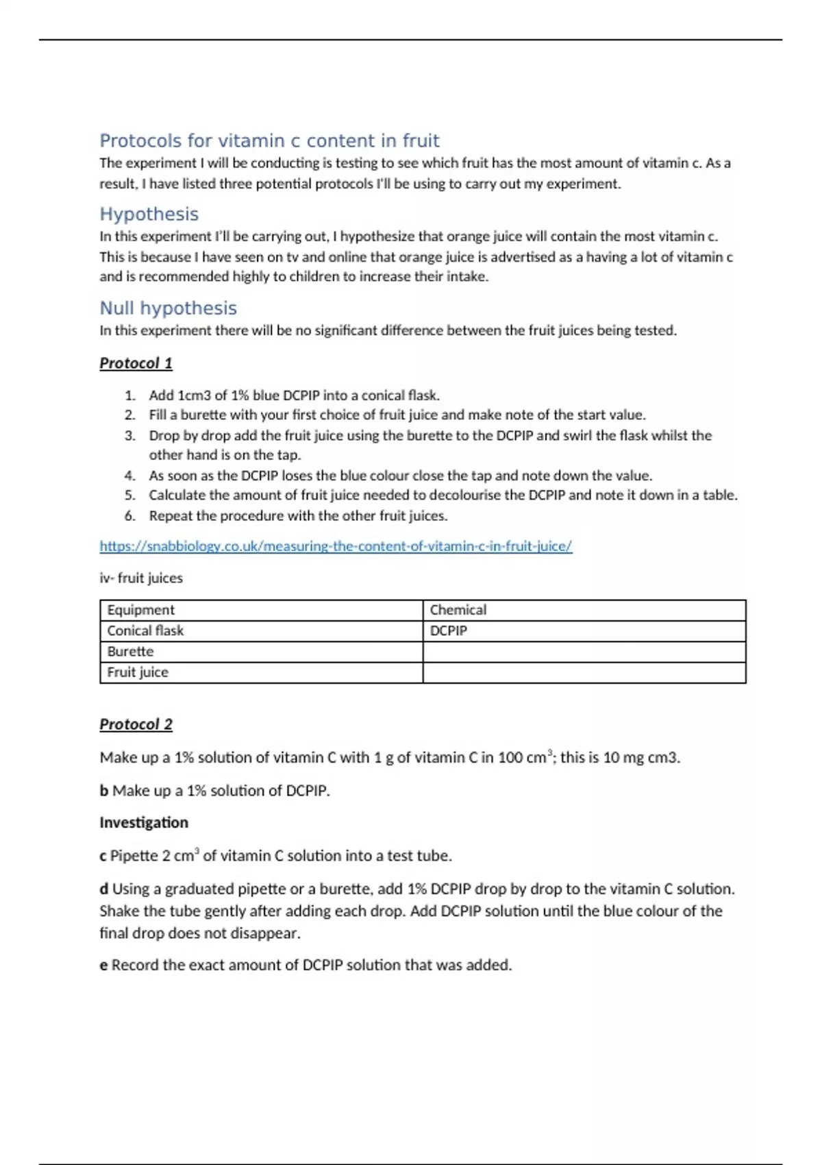 In this experiment I’ll be carrying out, I hypothesize that orange juice will contain the most vitamin c.