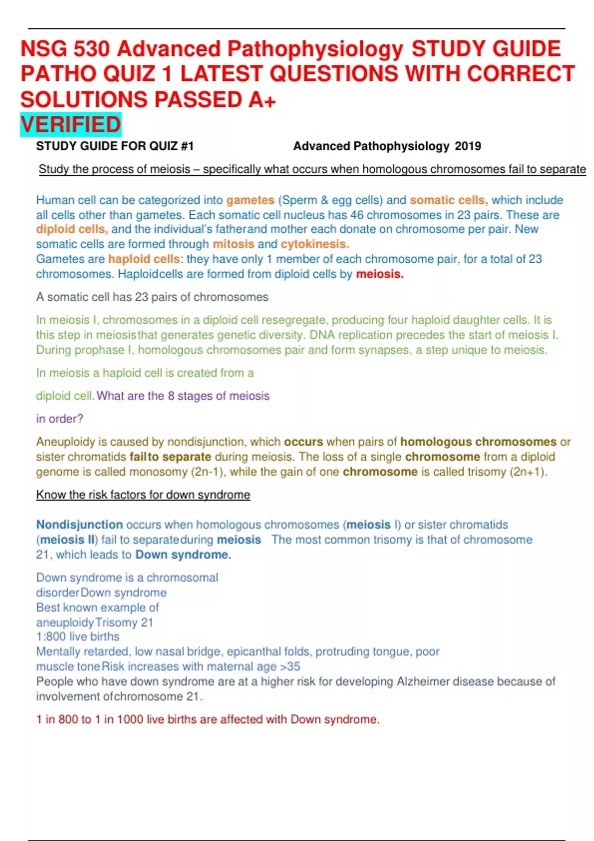 NSG 530 Advanced Pathophysiology STUDY GUIDE PATHO QUIZ 1 LATEST QUESTIONS WITH CORRECT SOLUTIONS PASSED A+ VERIFIED