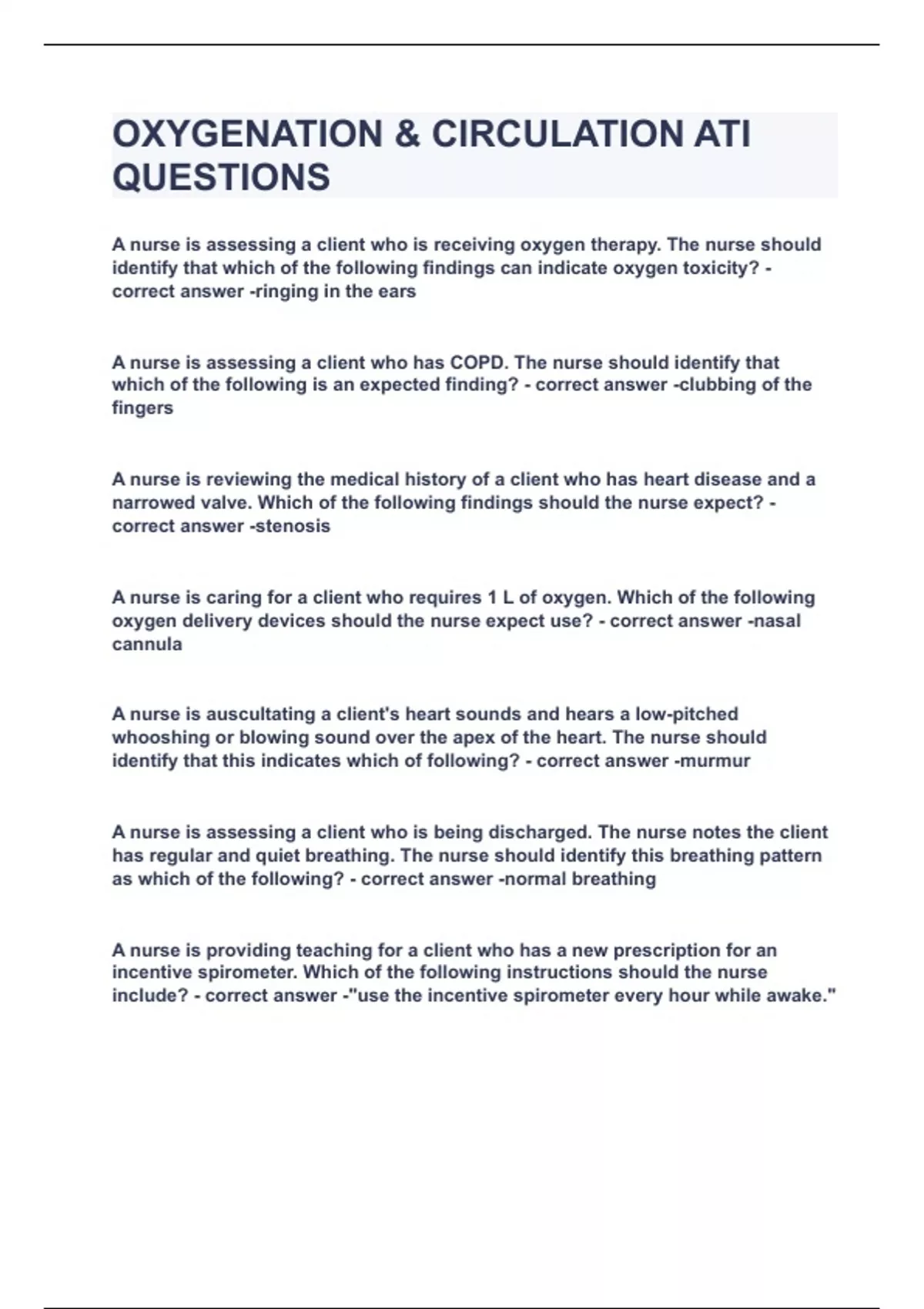 OXYGENATION & CIRCULATION ATI QUESTIONS|UPDATED&VERIFIED|100% SOLVED|GUARANTEED SUCCESS