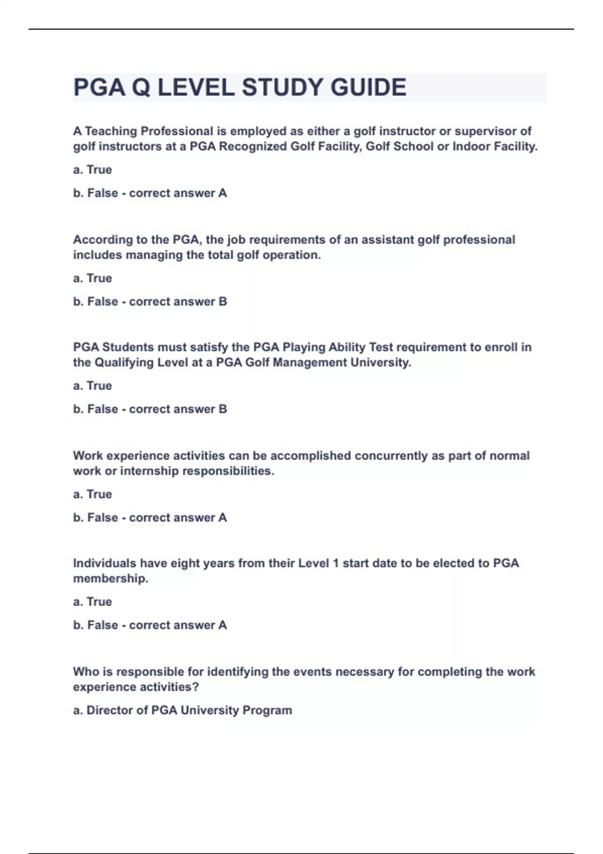 PGA Q LEVEL STUDY GUIDE|UPDATED&VERIFIED|100% SOLVED|GUARANTEED SUCCESS