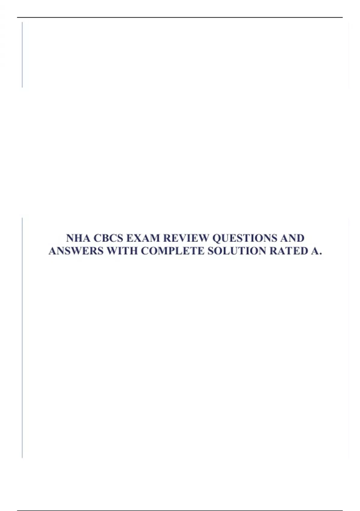 NHA CBCS EXAM REVIEW QUESTIONS AND ANSWERS WITH COMPLETE SOLUTION RATED A.