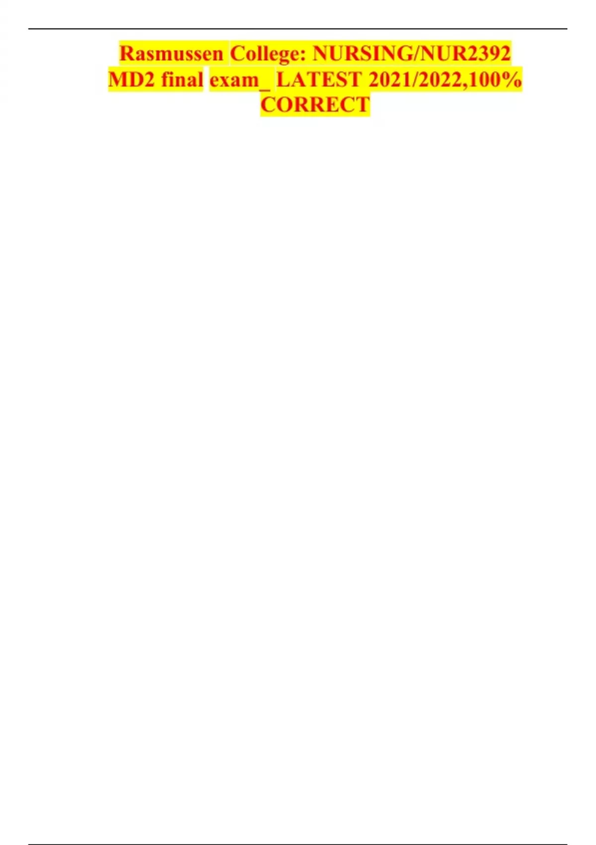 Rasmussen College: NURSING/NUR2392 MD2 final exam_ LATEST 2021/2022,100% CORRECT