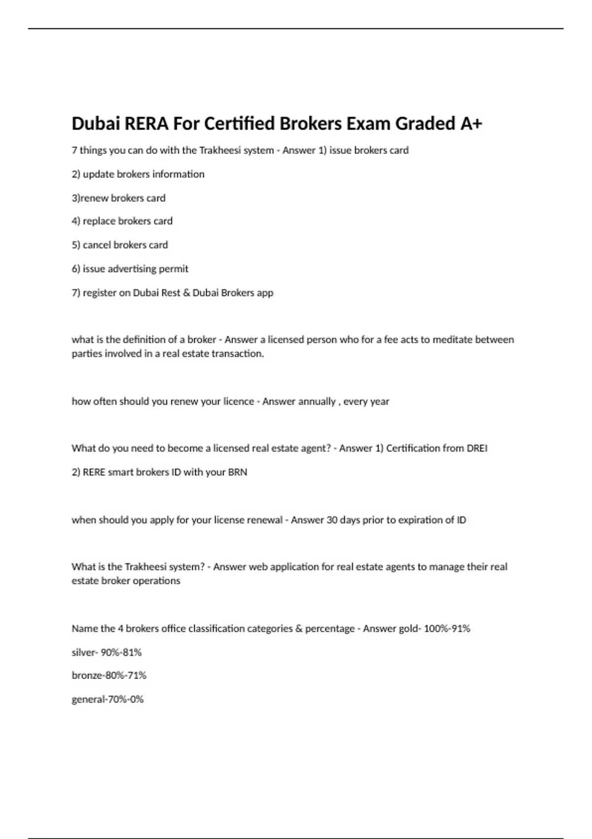 Dubai RERA For Certified Brokers Exam Graded A+