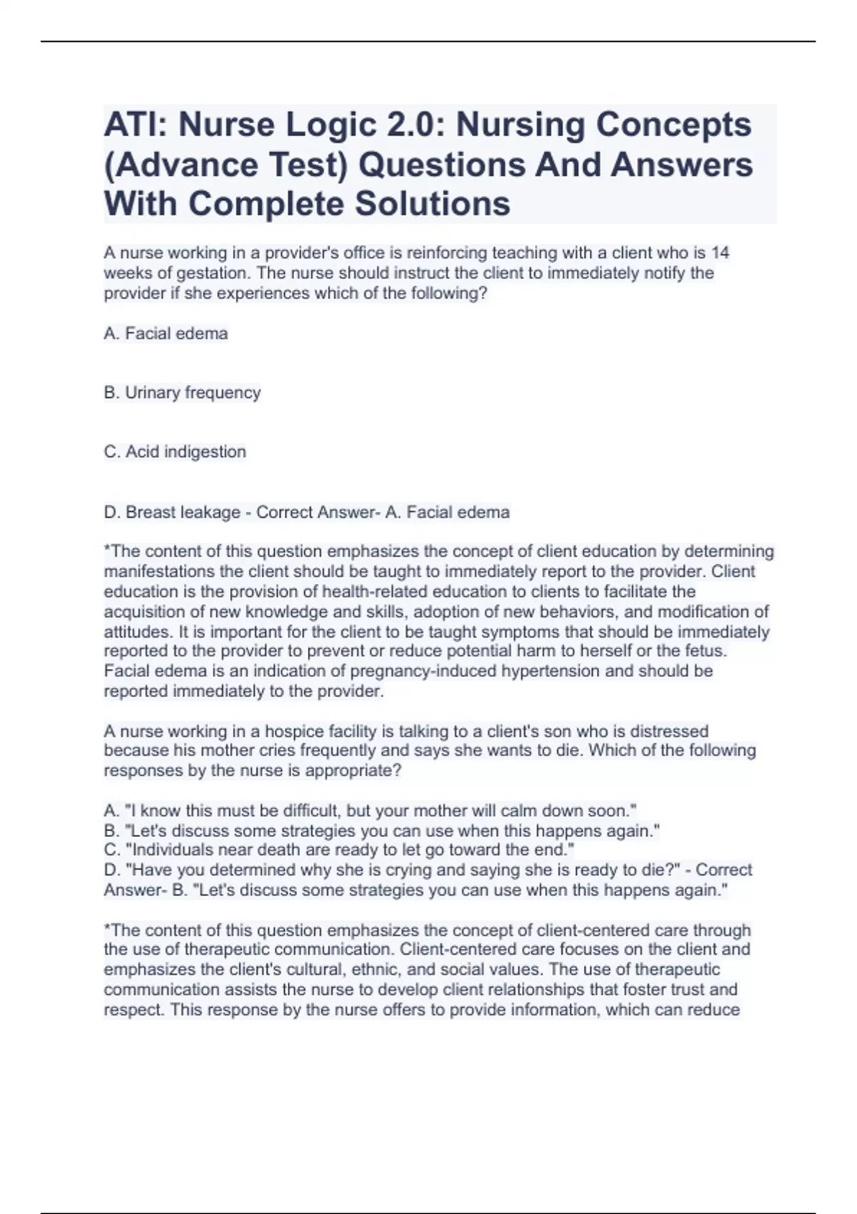 ATI: Nurse Logic 2.0: Nursing Concepts (Advance Test) Questions And Answers With Complete Solutions