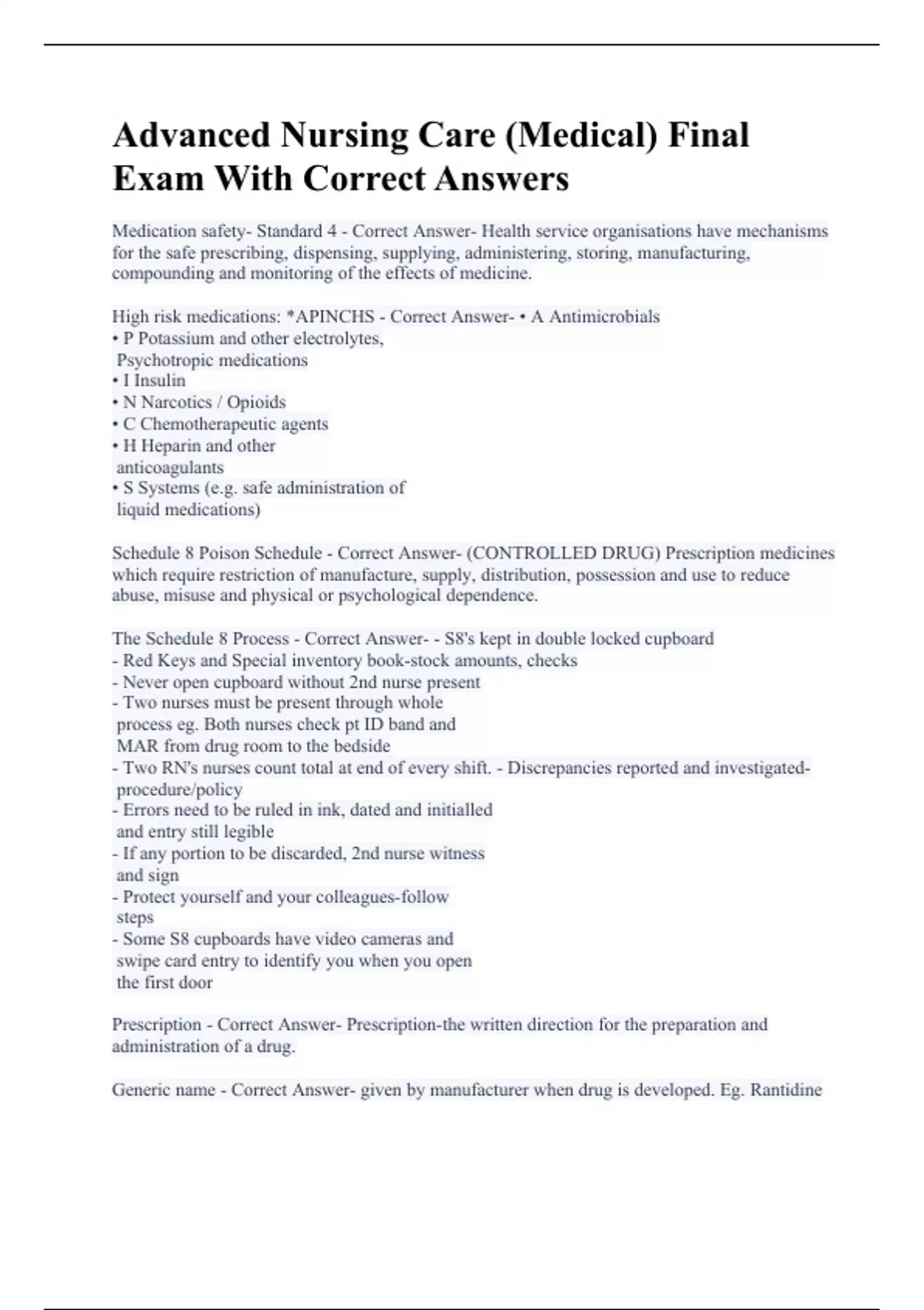 Advanced Nursing Care (Medical) Final Exam With Correct Answers