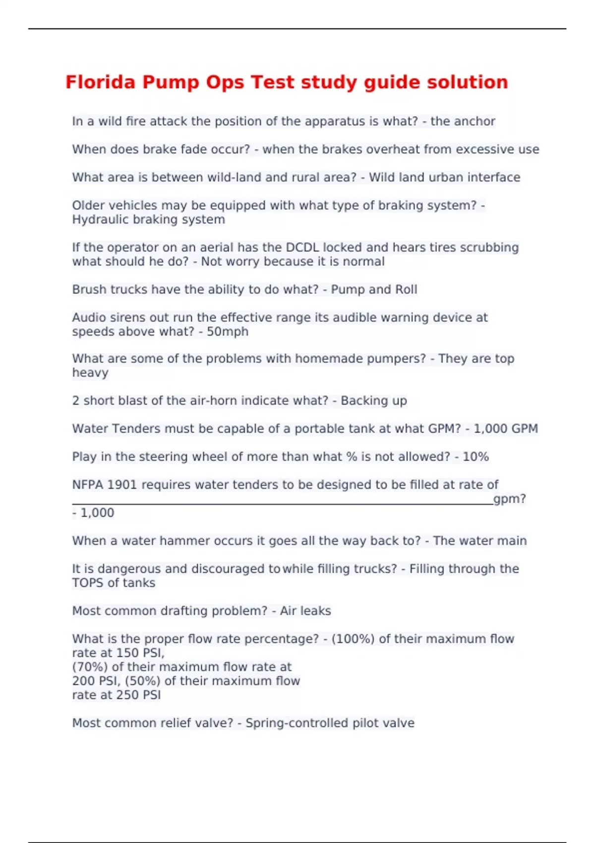 Florida Pump Ops Test study guide solution