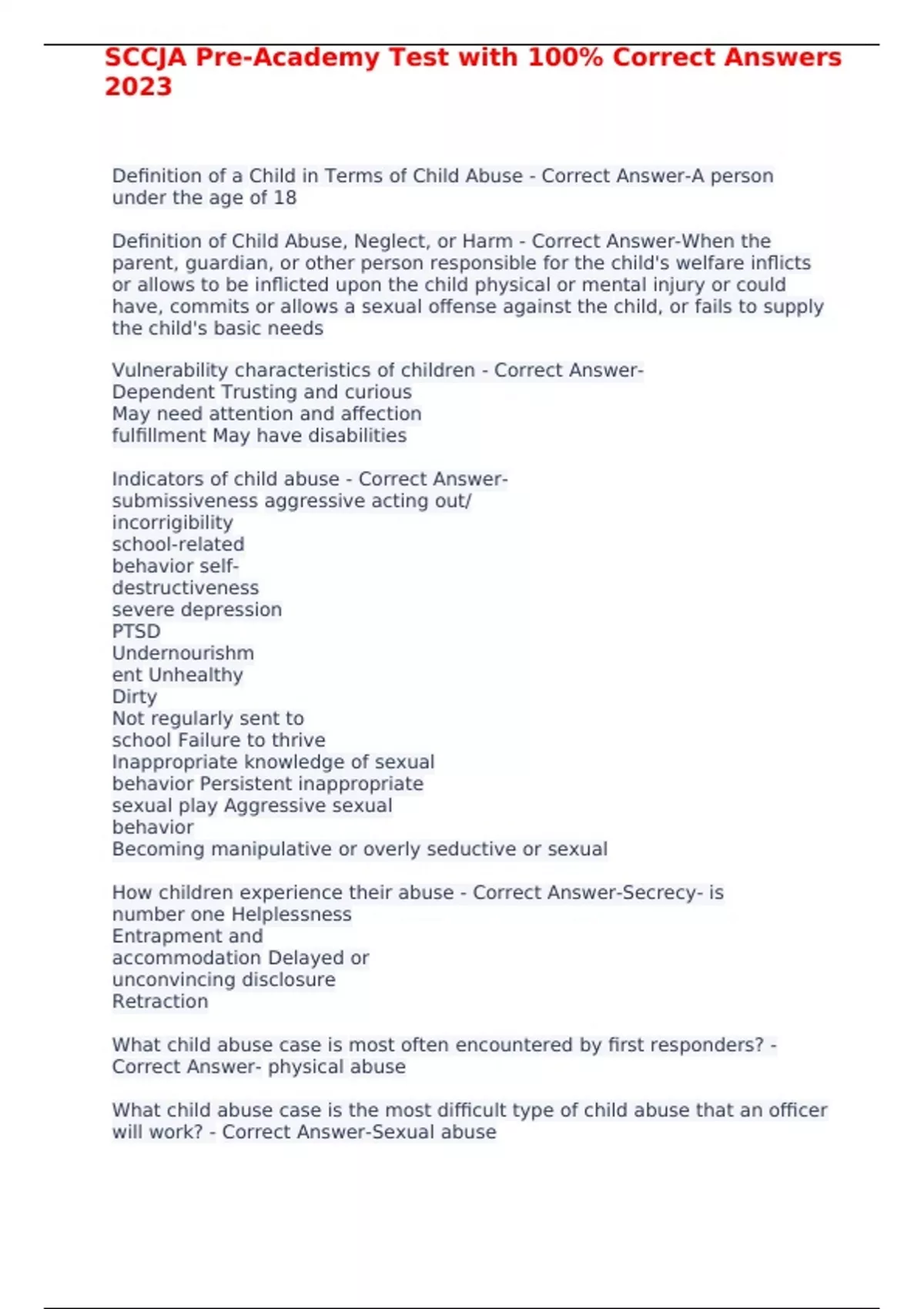 SCCJA Pre-Academy Test with 100% Correct Answers 2023