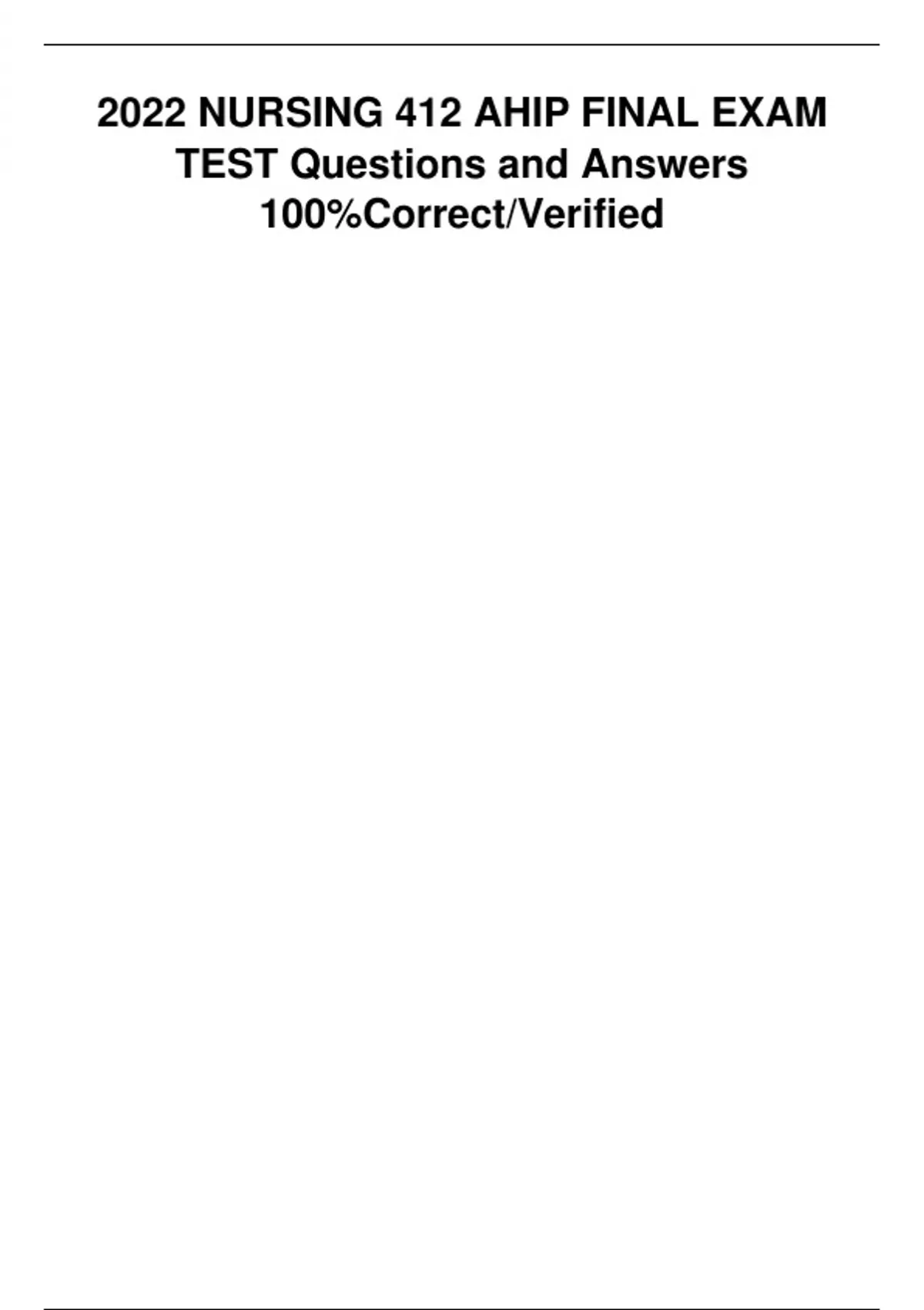 2022 NURSING 412 AHIP FINAL EXAM TEST Questions and Answers 100%Correct/Verified