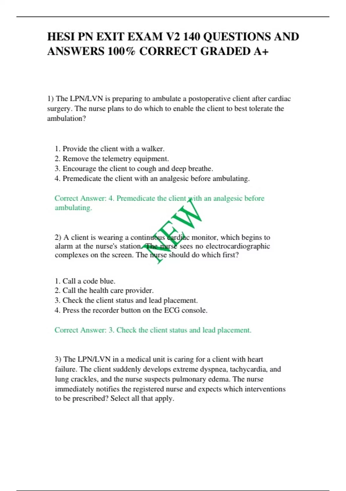 HESI PN EXIT EXAM V2 140 QUESTIONS AND ANSWERS 100% CORRECT GRADED A+ HESI PN EXIT EXAM V2 140 QUESTIONS AND ANSWERS 100% CORRECT GRADED A+