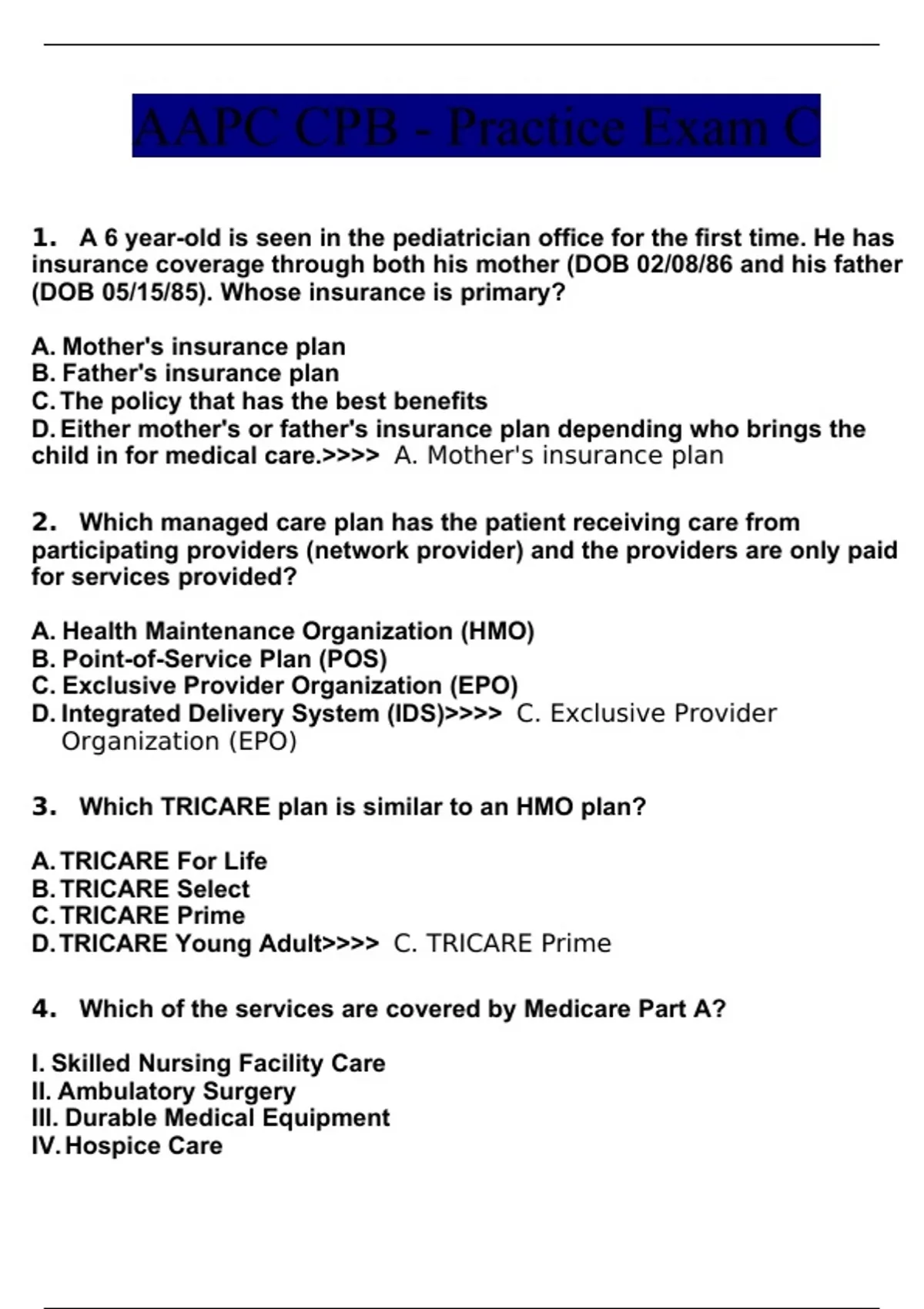 aapc cpb practice exam c with 100 correct answe