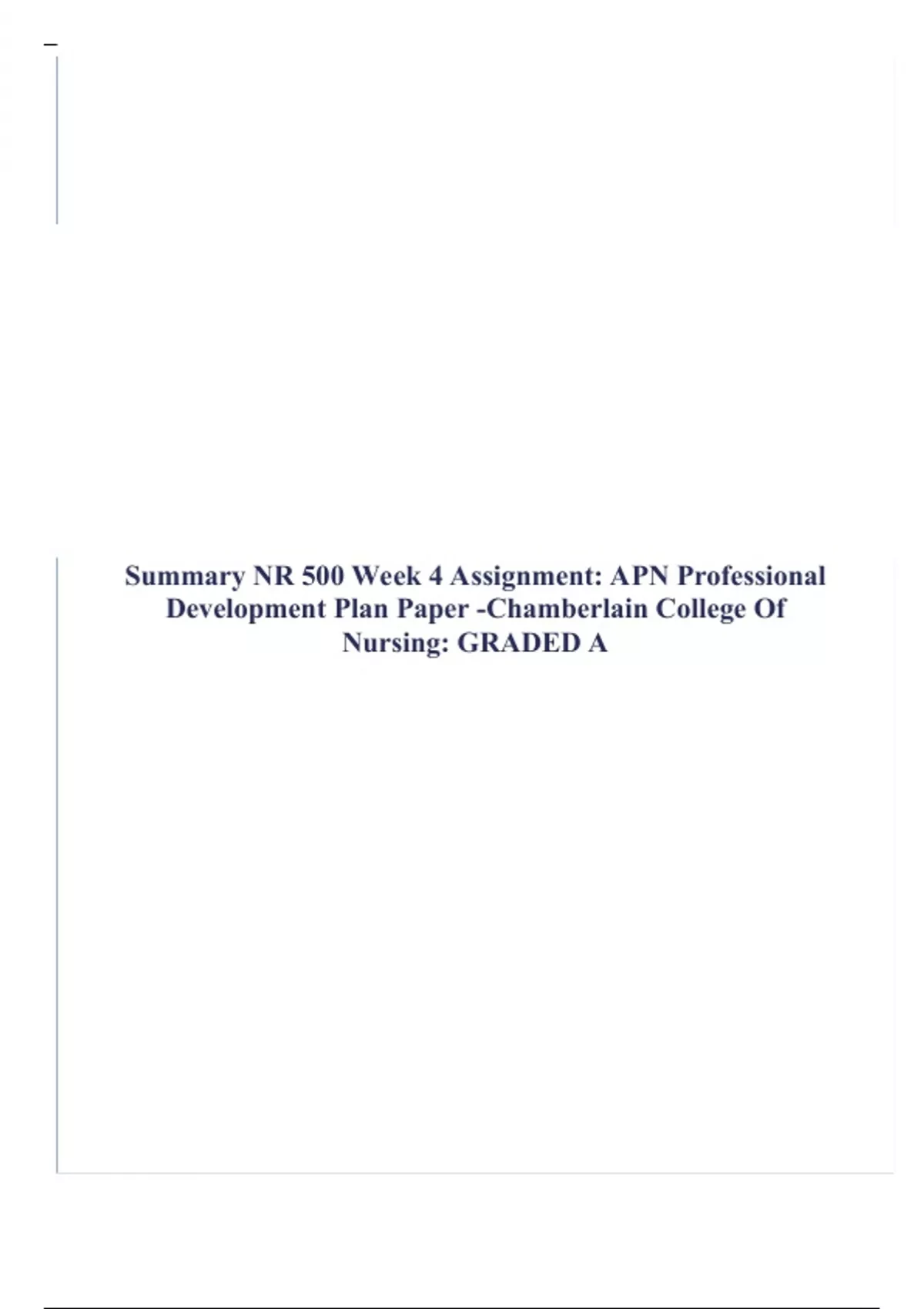 Summary NR 500 Week 4 Assignment: APN Professional Development Plan Paper -Chamberlain College Of Nursing: GRADED A