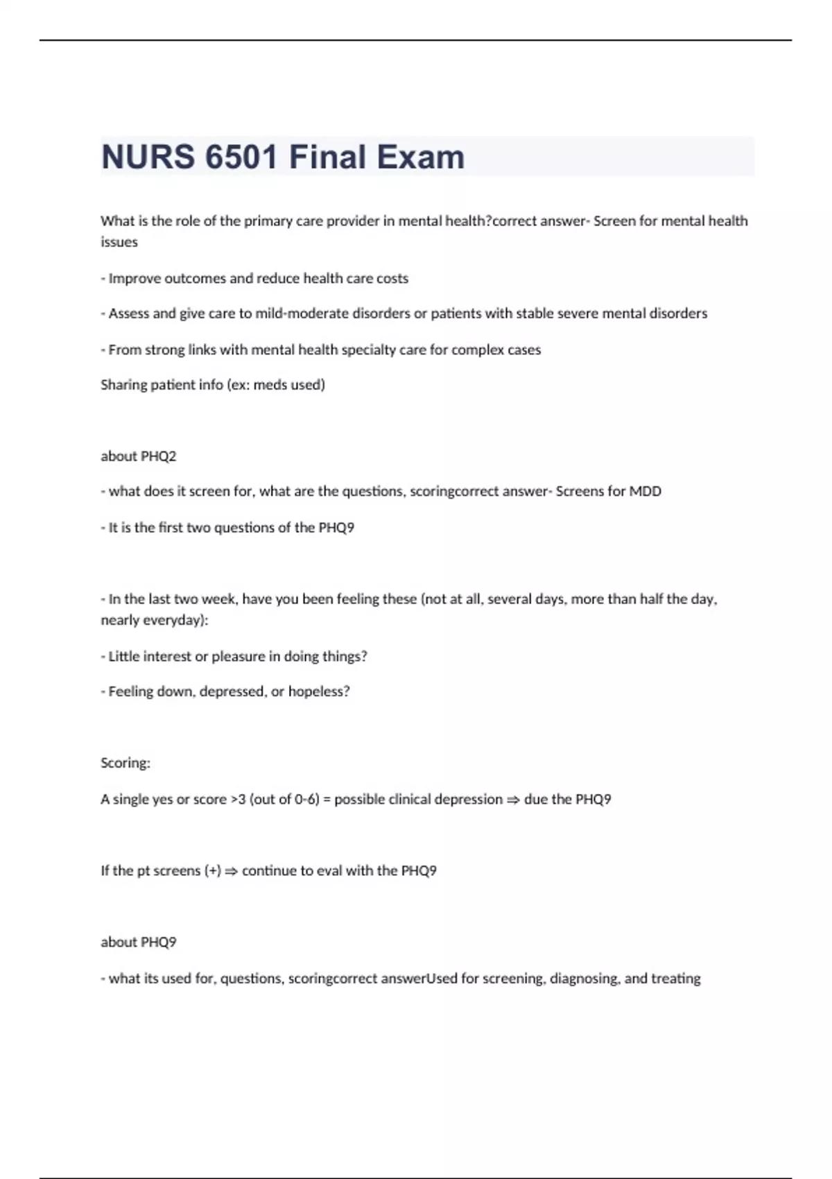 NURS 6501 Final Exam questions with correct answers