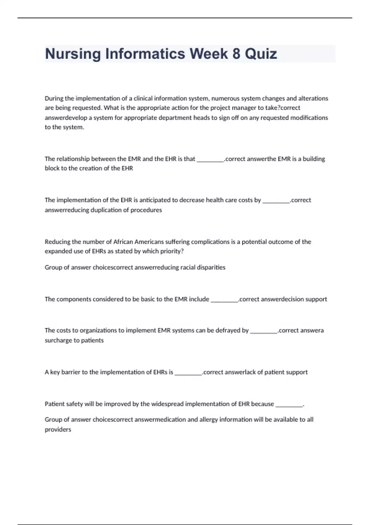 Nursing Informatics Week 8 Quiz questions with correct answers