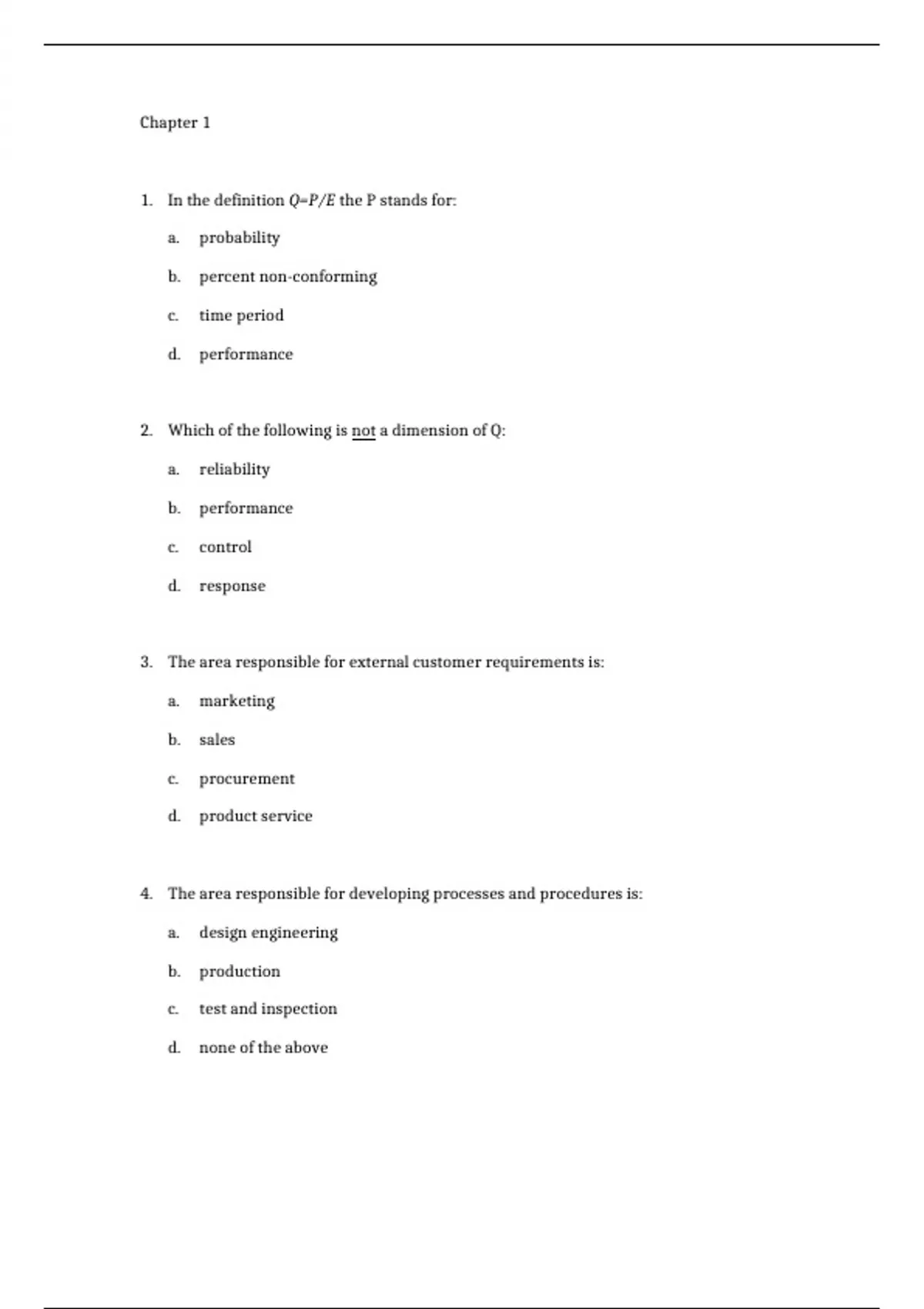 d. quality assurance