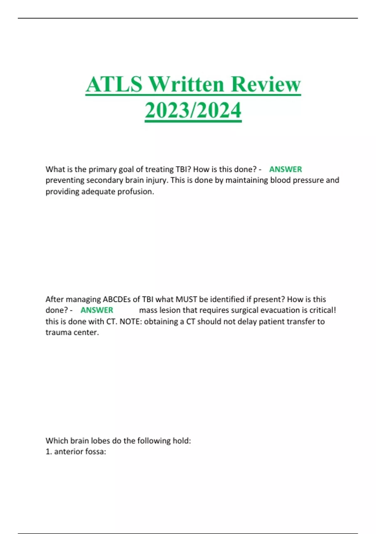 ATLS Written Review 2023/2024