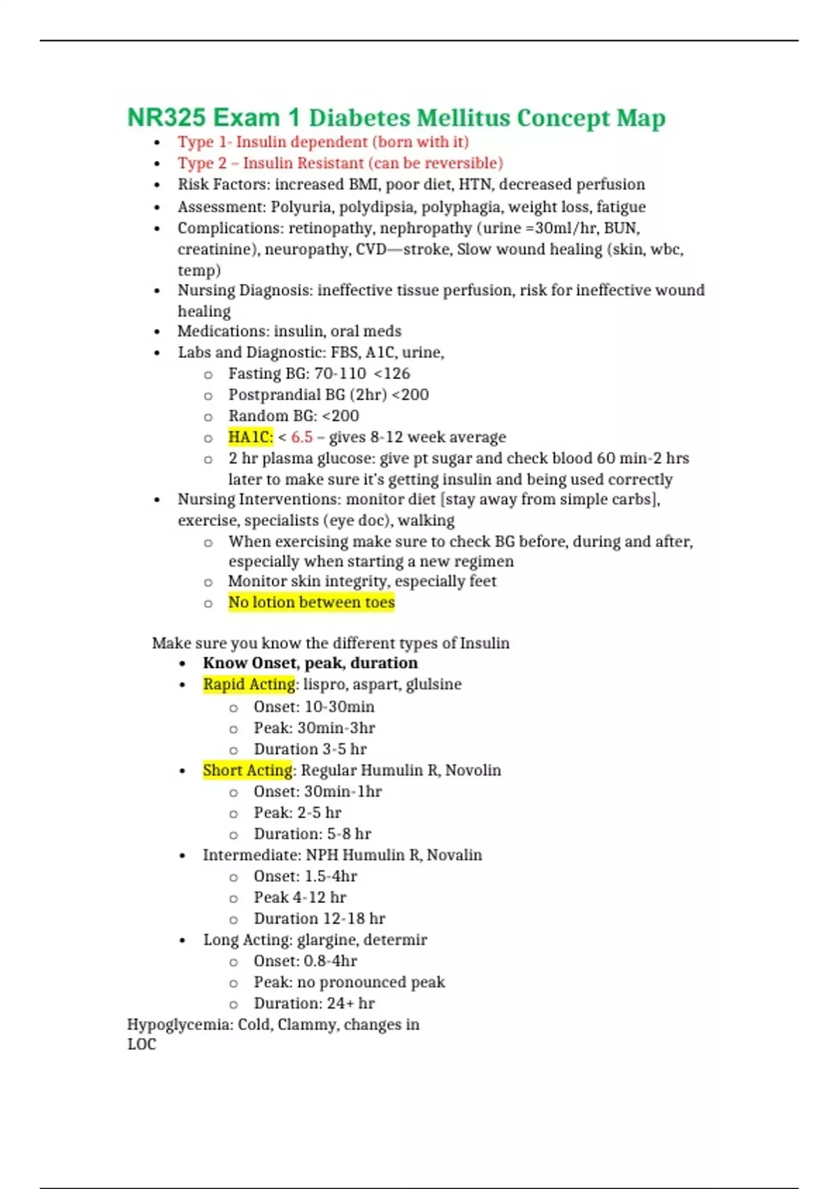 NR325 Exam 1 Diabetes Mellitus Concept Map