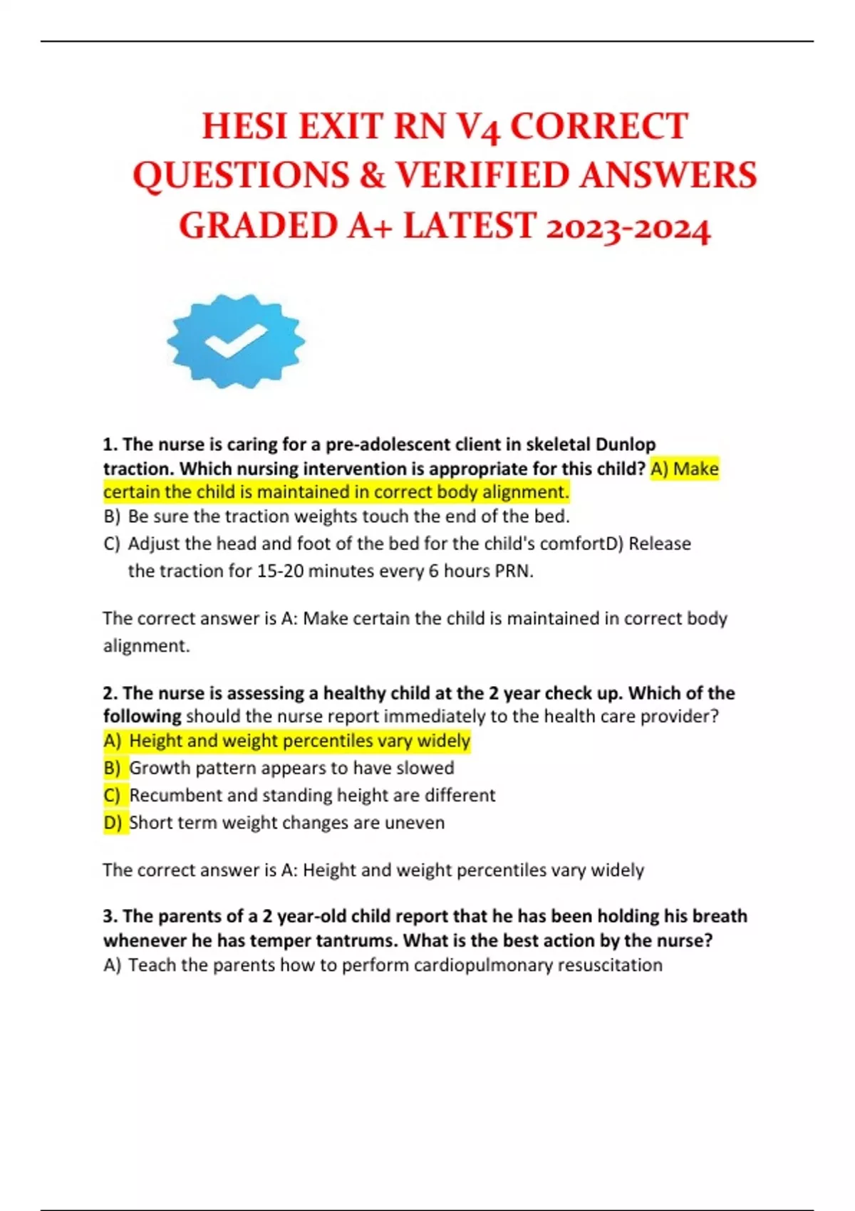 HESI EXIT RN V4 CORRECT QUESTIONS & VERIFIED ANSWERS GRADED A+ LATEST